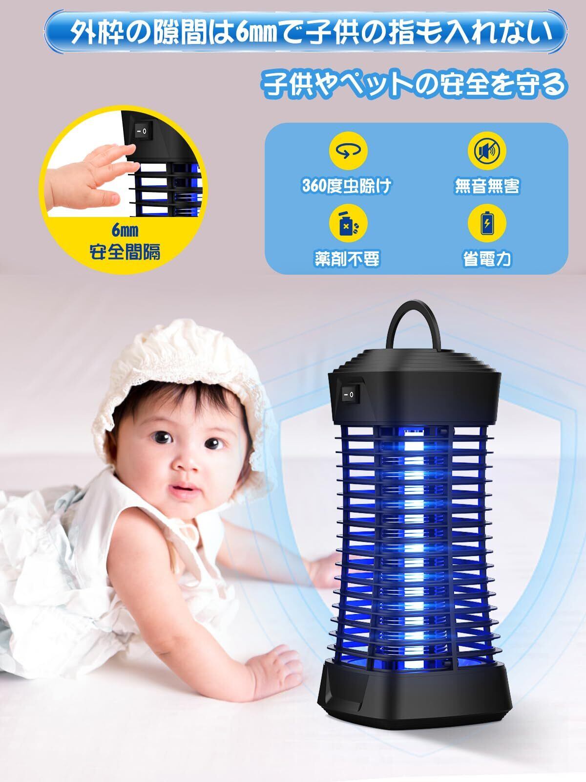 電撃殺虫器 スイッチ付き コバエ取り 殺虫灯 蚊取り 捕虫器 虫除け こばえとり 6W UV光源誘引式 365nm波長 薬剤不要 殺虫ライト 防虫 コバエ モスキート 虫 対策 室内 屋外 静音 吊り下げ式&据え置き式両用