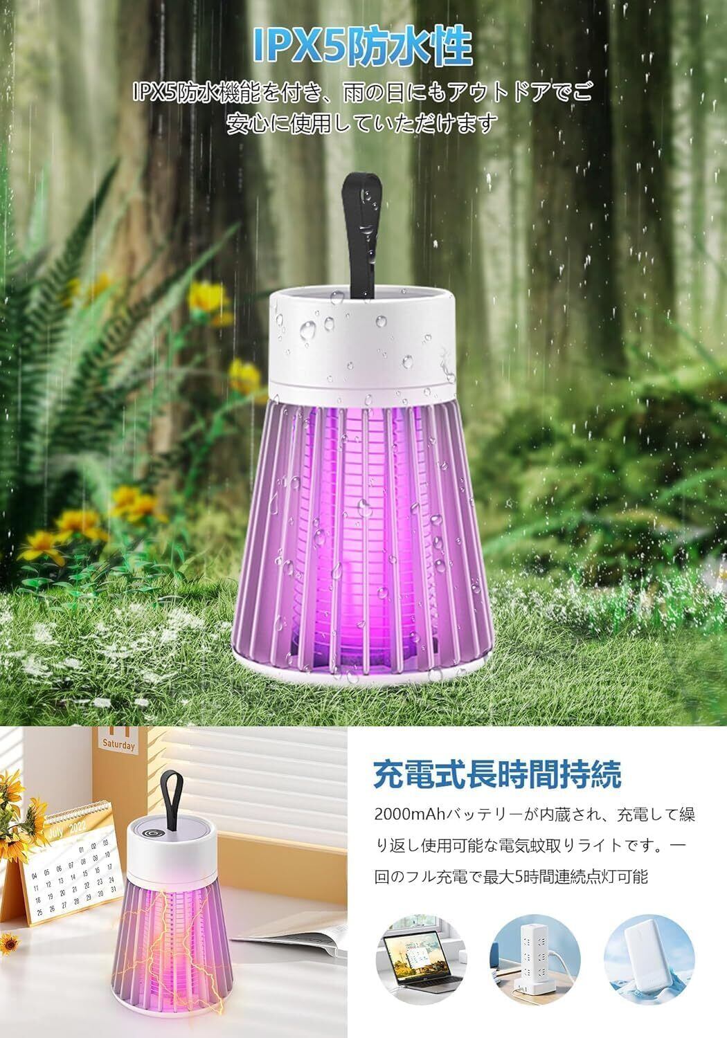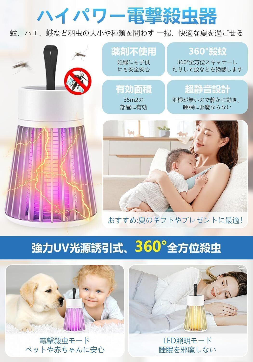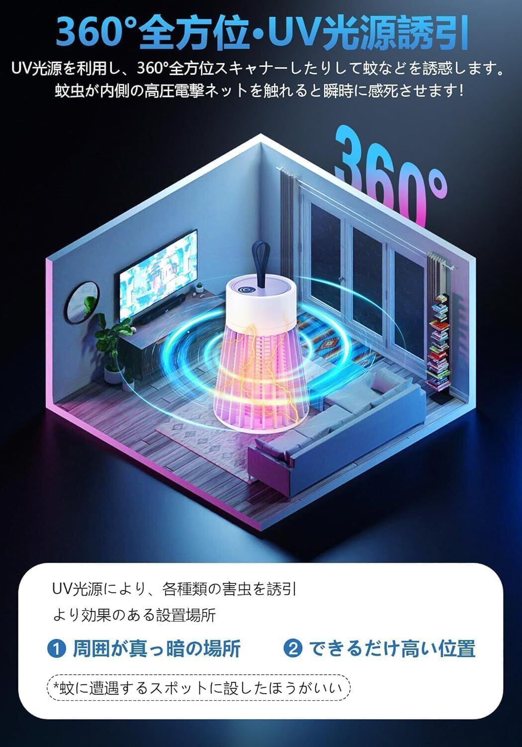 電撃殺虫器 コバエ取り【2025新型強力版】殺虫灯 殺虫器 虫除け 捕虫器 コバエ駆除 LED誘虫灯 殺虫ライト 室内 360°強力蚊除け 省エネ 静音 無害 薬剤不用 寝室/病院/台所/玄関/居間/民宿/オフィス/飲食店などに適用 吊り下げ式&据え置き式両用 屋外/屋内などに適用 日本語説明書付き