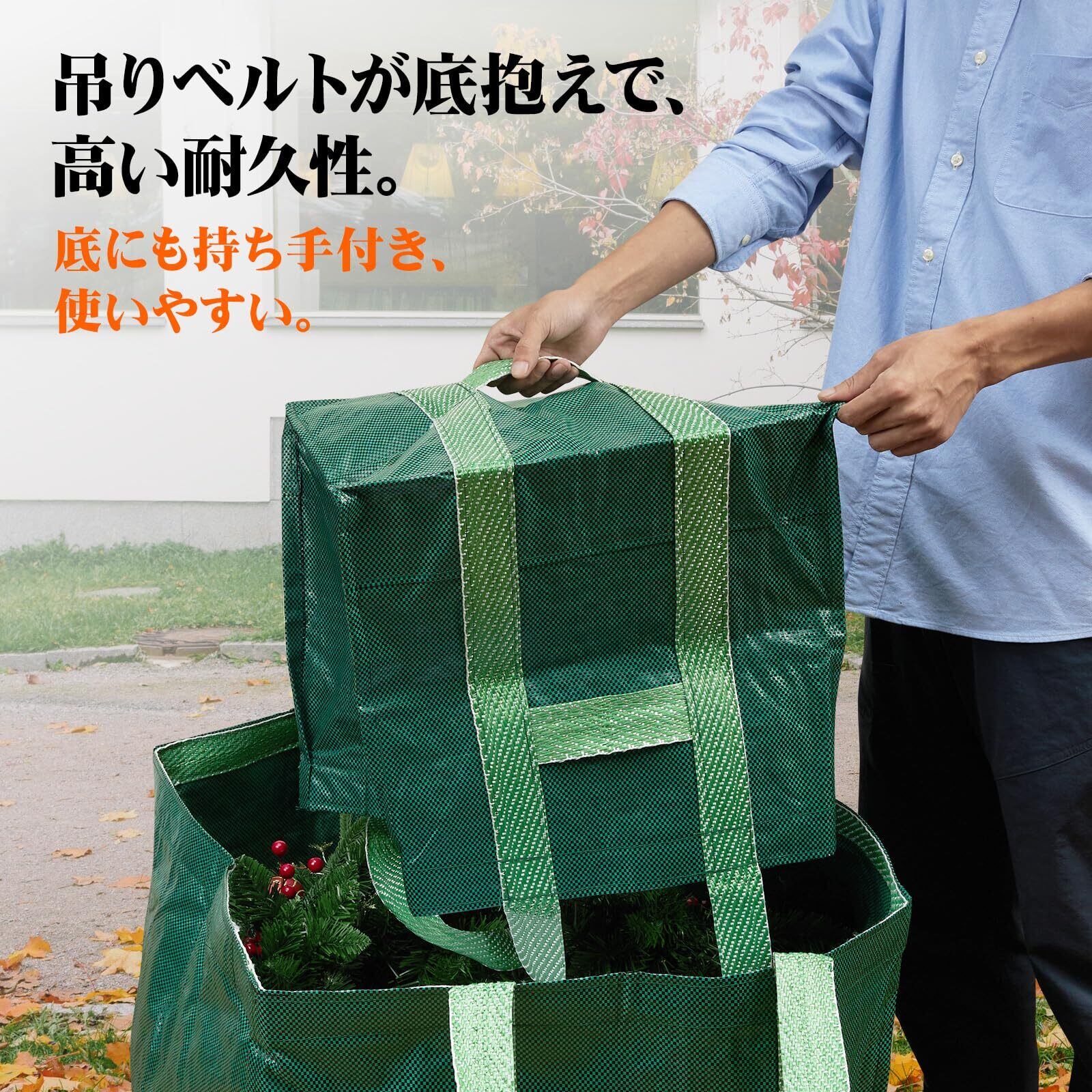ガーデンバッグ 丈夫 自立式 落ち葉入れ 底部の二重層の厚み 40×35×40cm 55L落ち葉集め 剪定ゴミ袋 落ち葉 袋 園芸 バック 1枚入