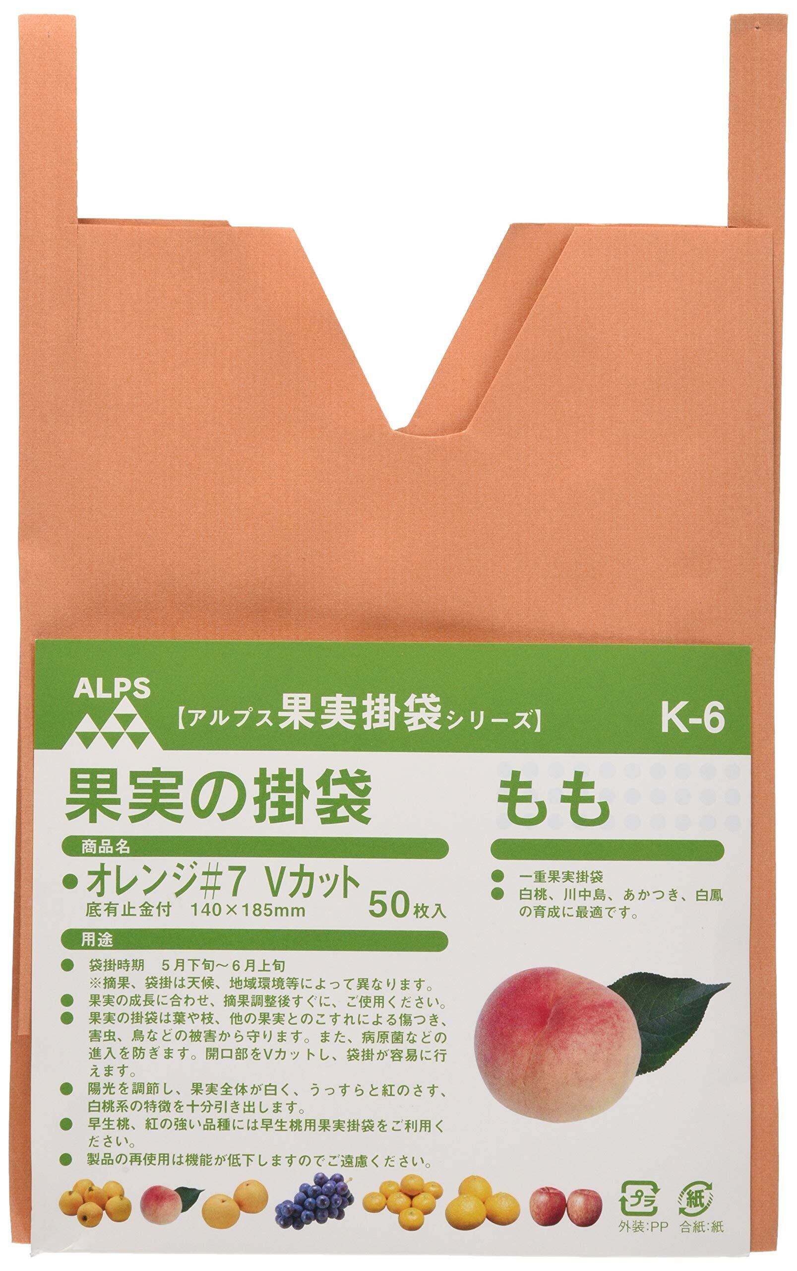 一色本店 果実袋もも オレンジ#7 Vカット 遮光度79.1% K-6 50枚入り