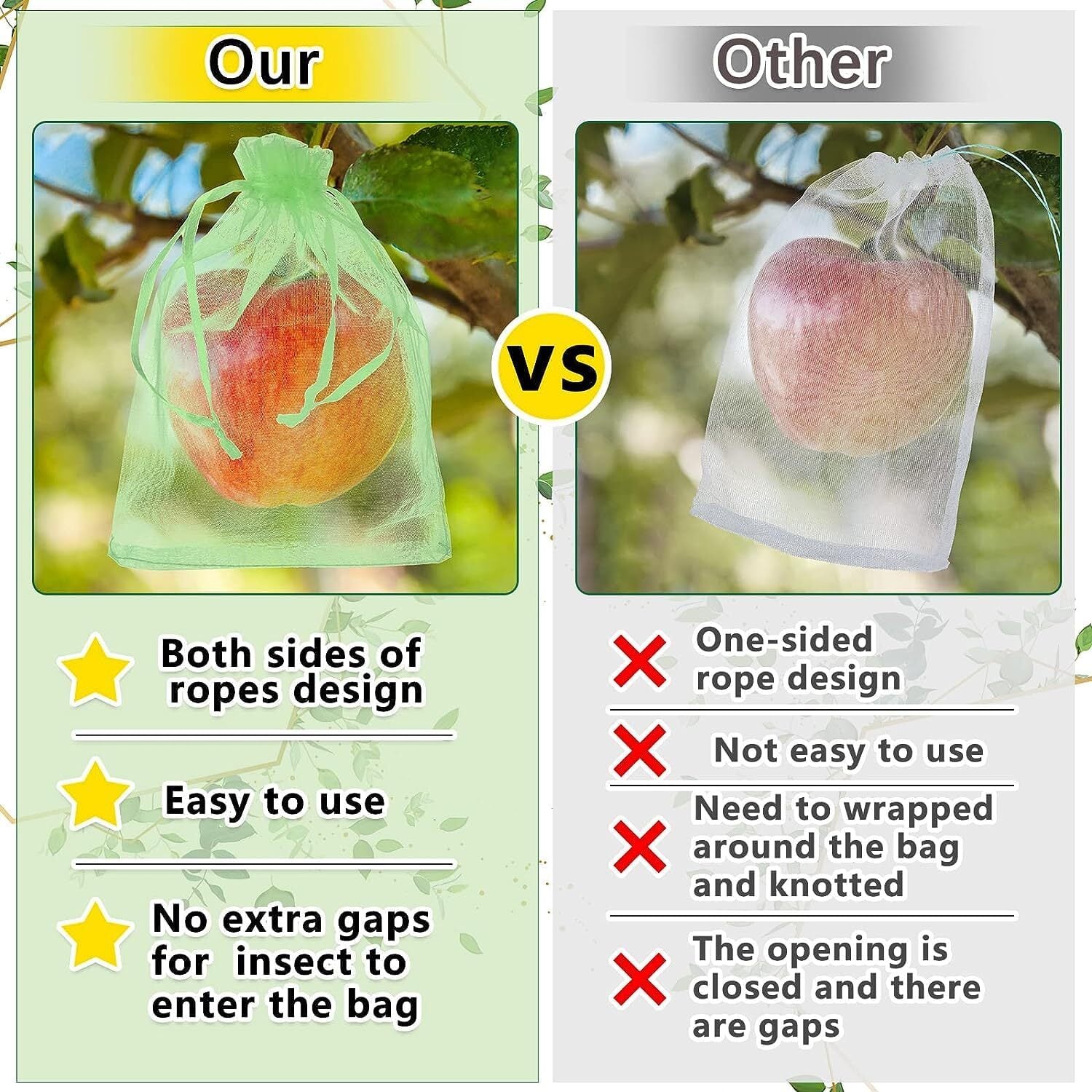 柔らかく軽量なオーガンザ生地のバッグは、鳥の啄みや害虫から果実を守るのに十分な強度を備えています。