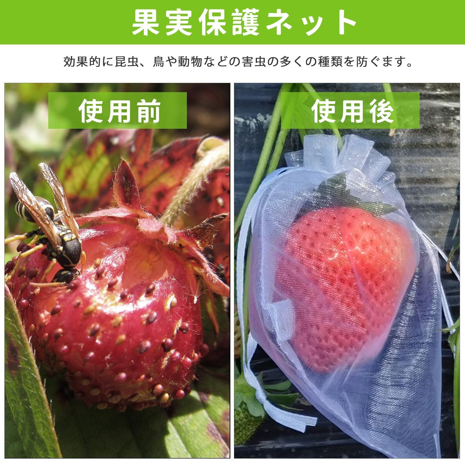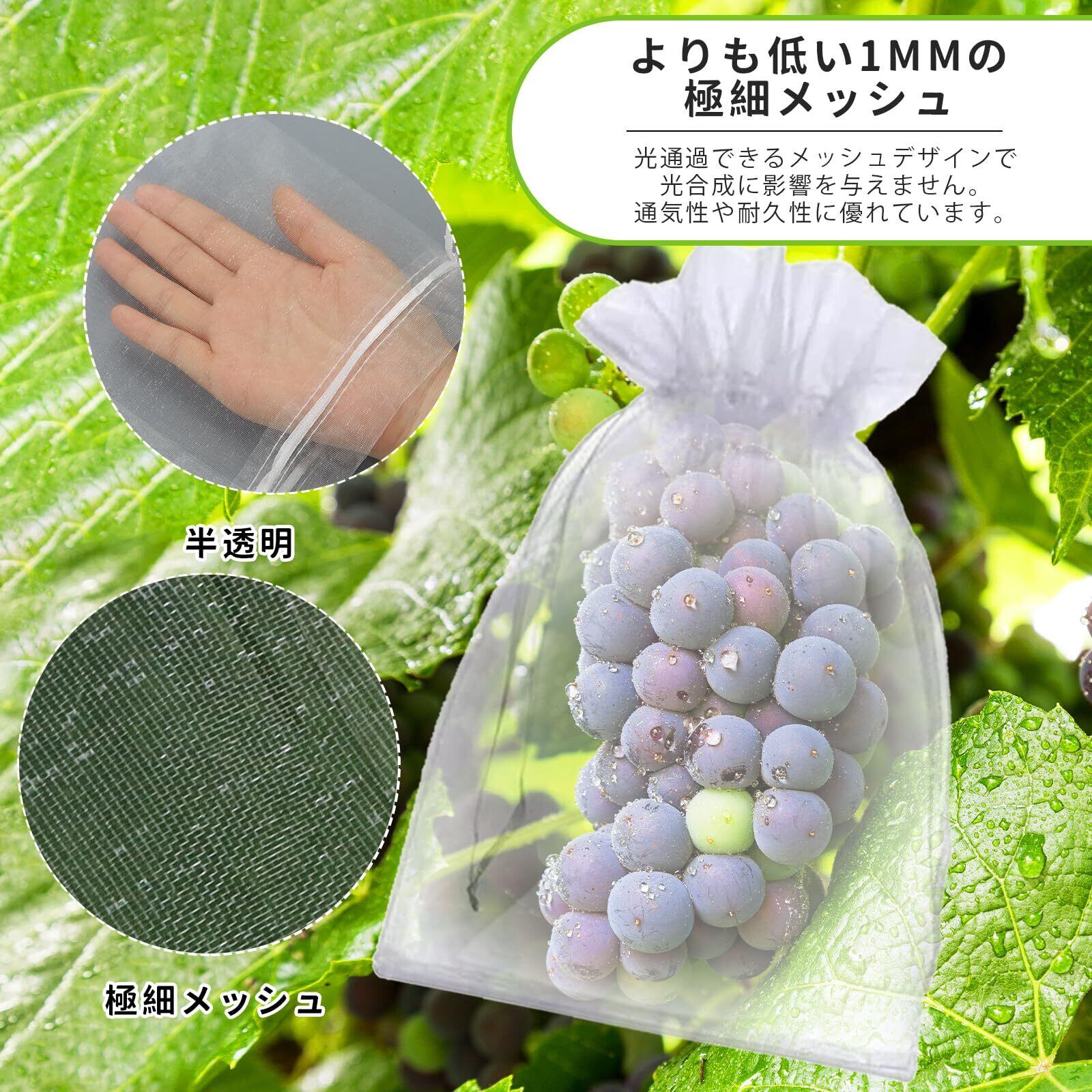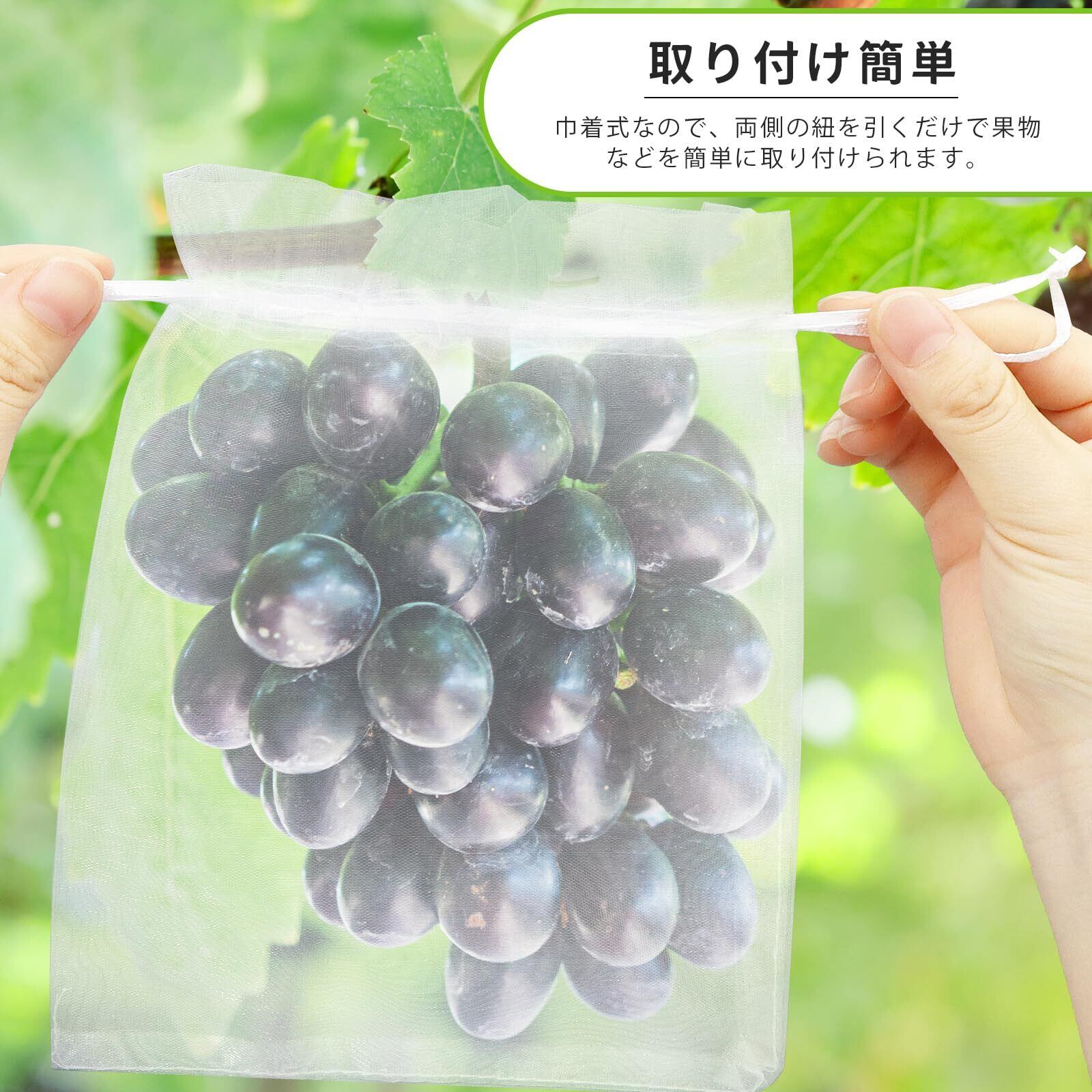 【超細メッシュ】:よりも低い1mmの極細メッシュに設計された虫よけカバーのため 、上質なオーガンジー生地を使用し、手触りが快適で、破れにくい、効果的に昆虫、鳥や動物などの害虫の多くの種類を防ぐことができし、果物に十分な保護を与えます。
