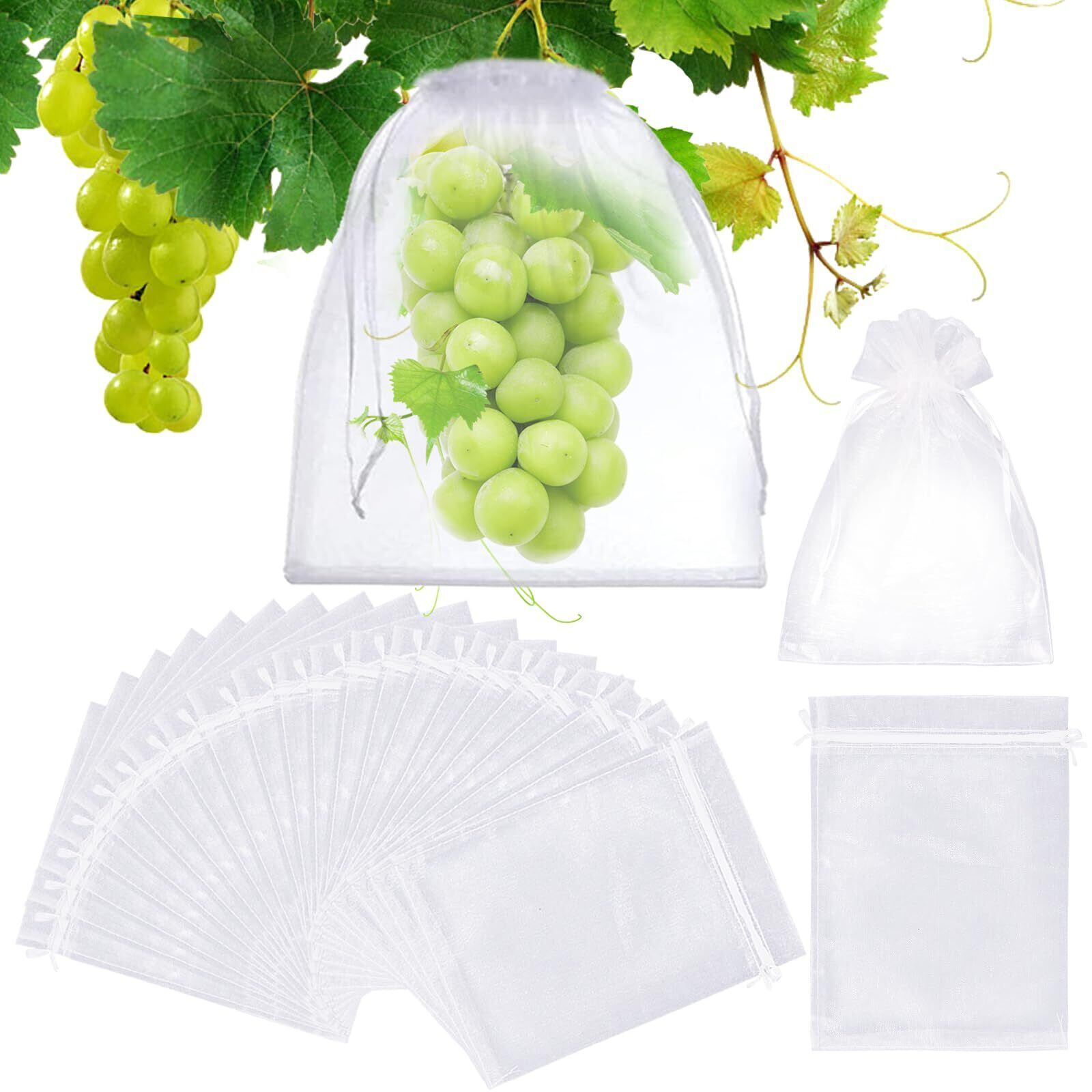 ROYUEXT 果実袋 ぶどう 袋 20*30cm 50枚入 大きいサイズ ブドウ 袋 穴極細 害虫鳥避け カラス/鳩よけ 通気性/光通過/自然成長 枇杷の実 びわ イチジク 洋梨 巾着袋 メッシュバッグ 果実袋 収穫ネット 家庭菜園用 園芸用(透明) | KSショップ