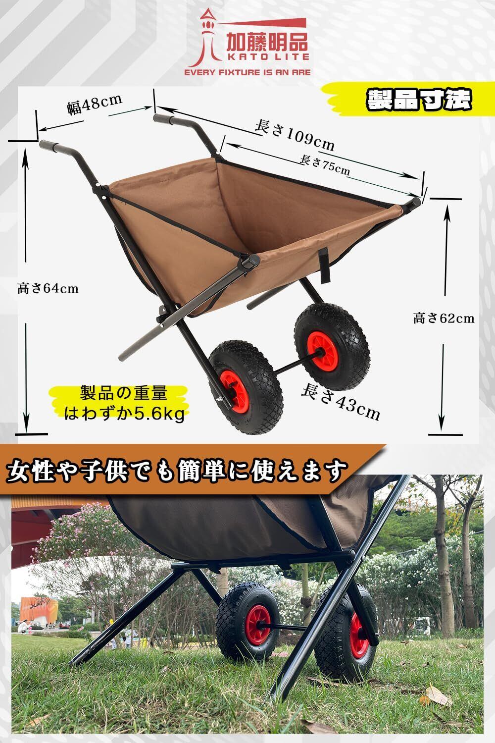 KATOLITE 折りたたみ式 手押し二輪カート 園芸 作物 庭のゴミ運搬 ねこ台車 保管や持ち運びが簡単 K-9