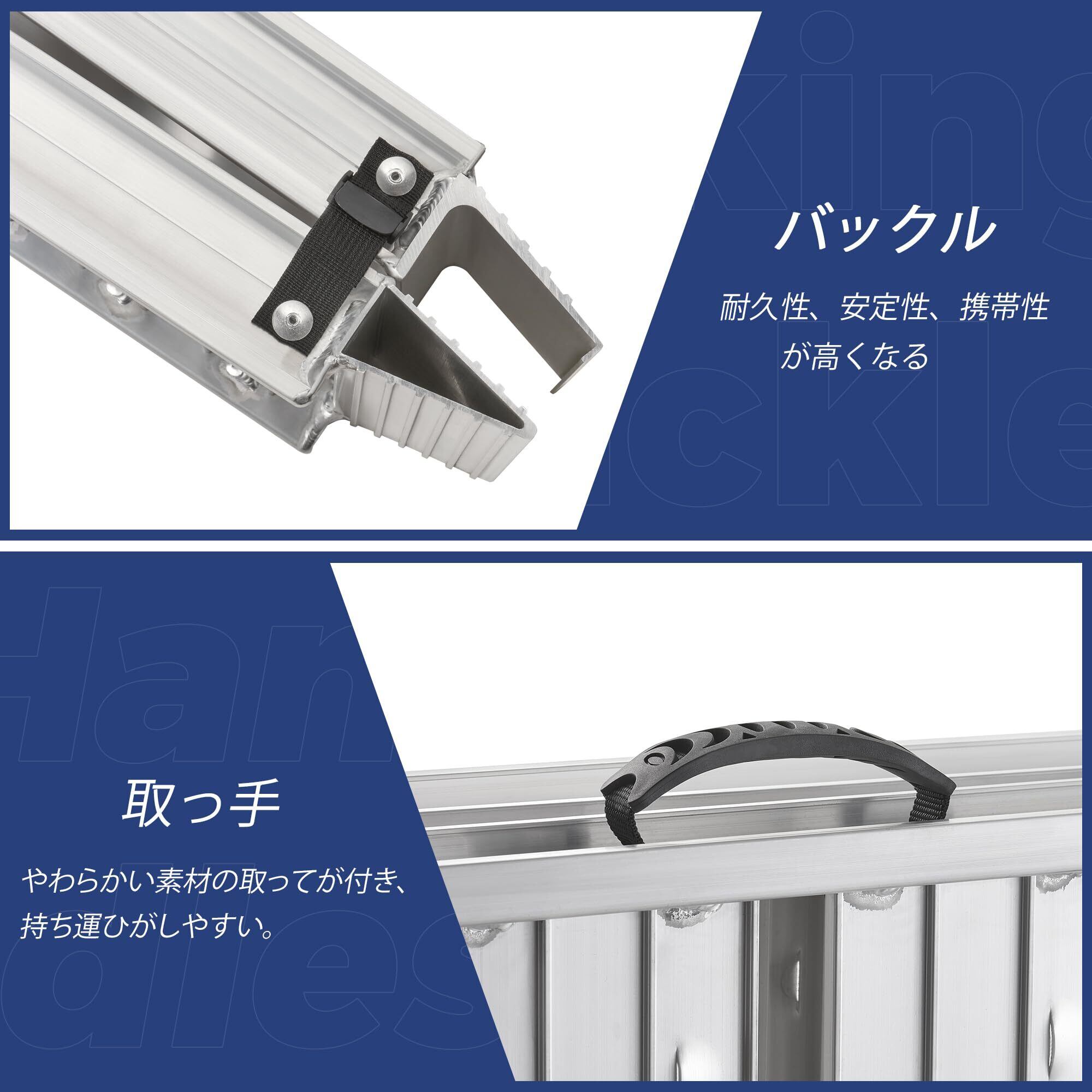 【滑り止め】アルミラダーのヘッド部に延長プレート付き、トラックに つかめますので滑りを止めます。表面に滑り止めの加工で、摩擦力が増し、上るときに後ろ滑りを防ぐことができます。
