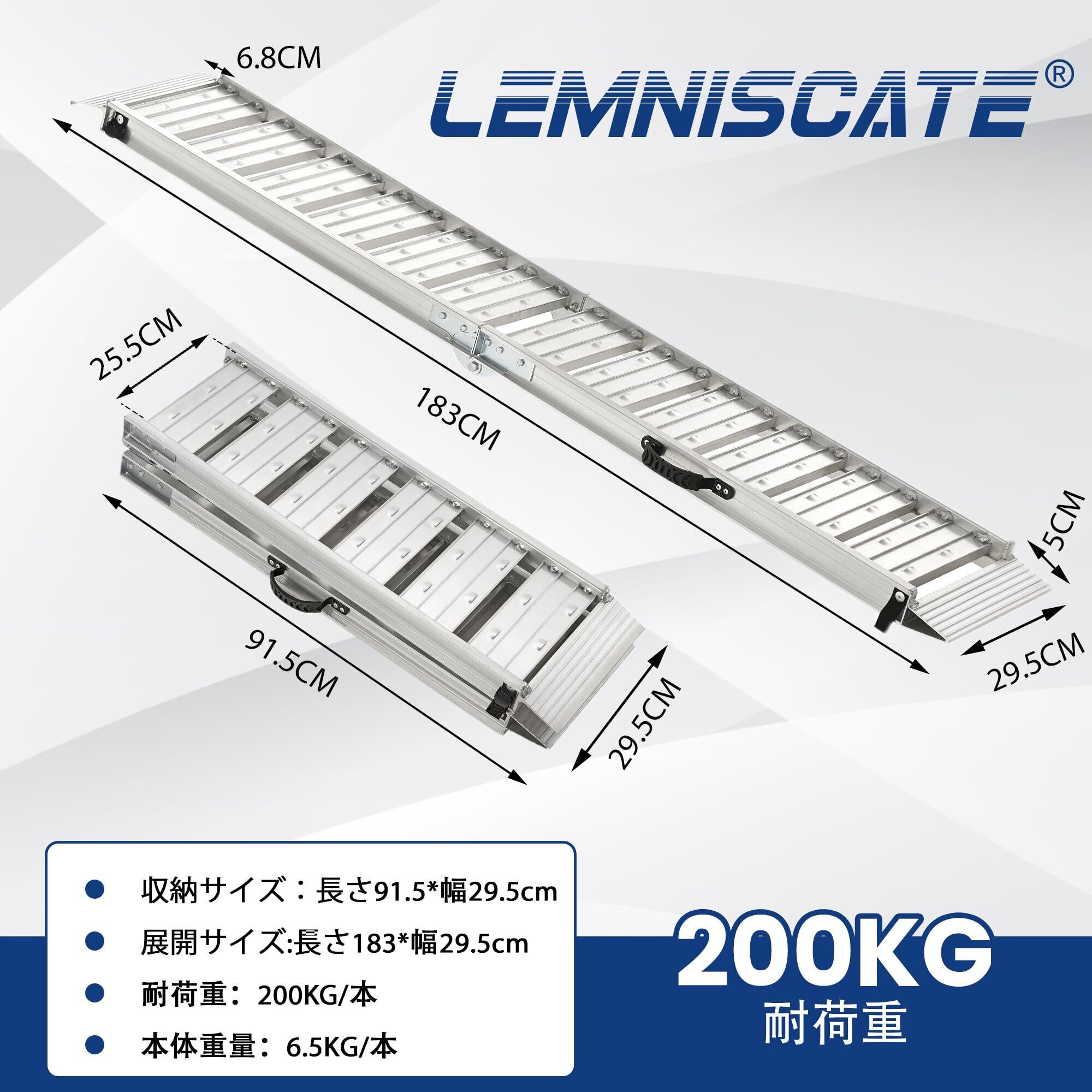 LEMNISCATE アルミラダーレール 1本 長さ183cm 外幅29.5cm 耐荷重200kg 折り畳み式 アルミブリッジ 軽量アルミラダー コンパクト 段差解消スロープ 滑り止め、オートバイク、トラックローディング用スロープ ブラック