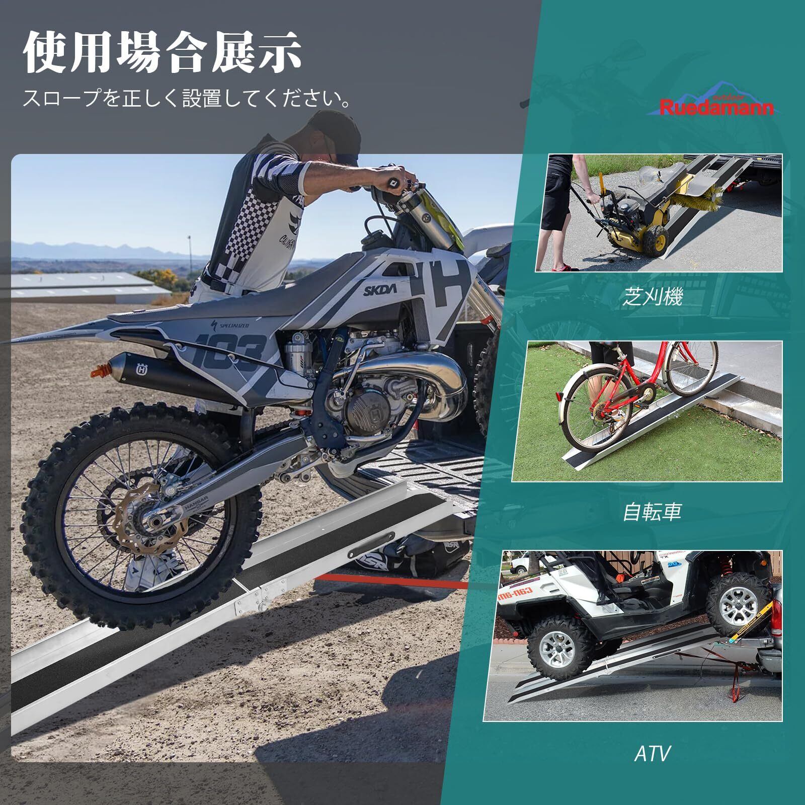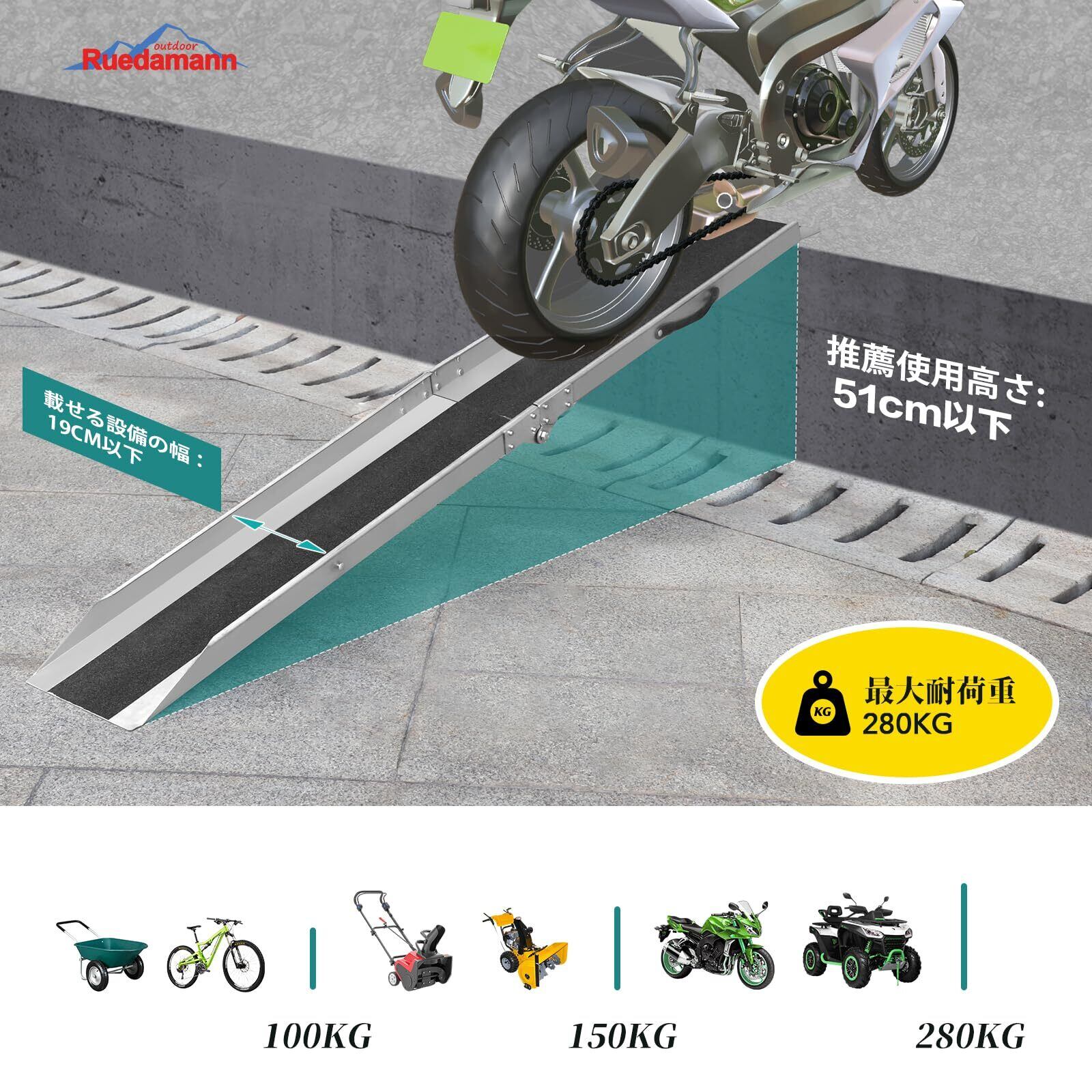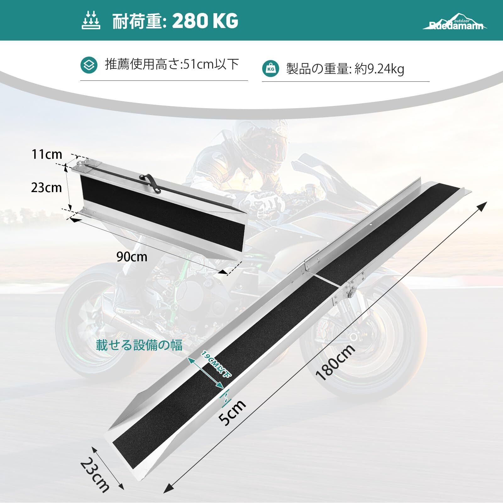 Ruedamann バイク ラダー 長さ180*23cm 耐荷重280kg 折り畳み式バイク スロープ スチール製 取っ手付き 自転車ラダー バイク ATV四輪バギー用 1本