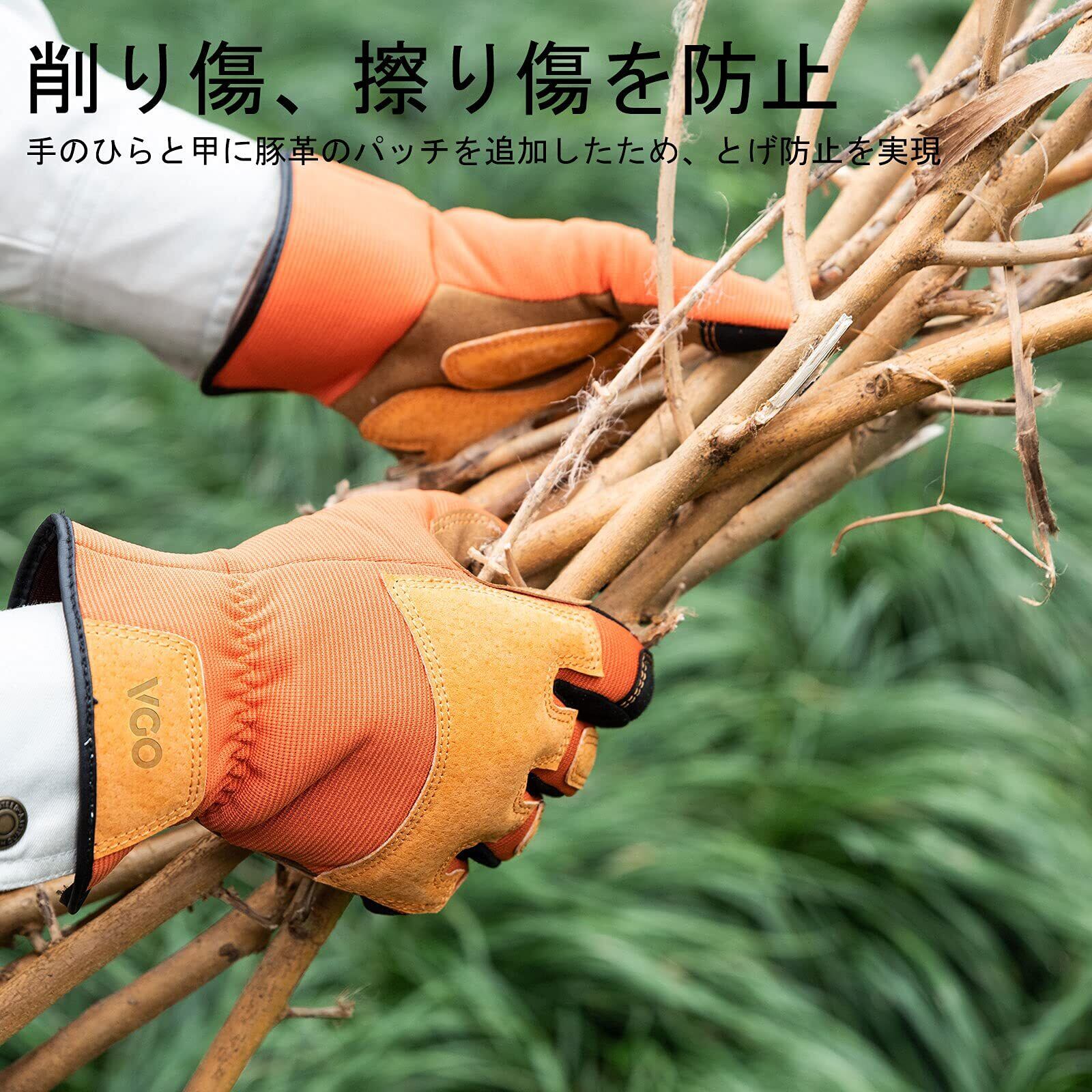 [Vgo...] メンズ ガーデン手袋 ガーデニング グローブ 合皮 園芸用手袋 トゲ防止 草刈り 中薄 作業用 園芸 手袋 ガーデニング 手袋 園芸用品 作業手袋(M,オレンジ,SL7475-ML)