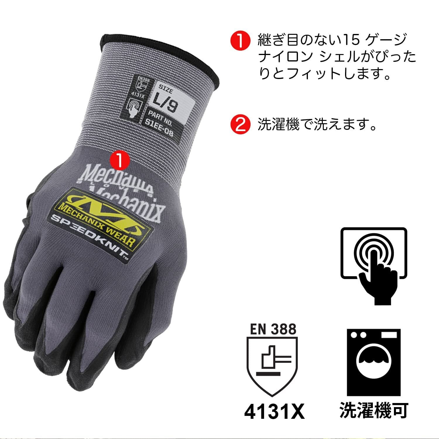 [メカニクスウェア] 安全 背抜き手袋 スピードニット XL グレー S1EE-08-010 作業用 耐摩耗 耐引裂 タッチスクリーン対応 洗濯可 メカニック 防災 DIY 【日本正規品】