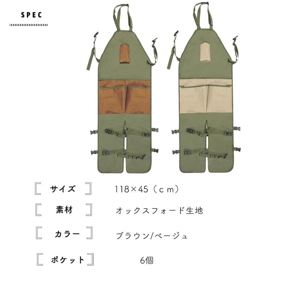ガーデニング エプロン 草刈り 刈払機 作業用エプロン 前掛け バンド ハーネス サロペット 草刈 作業 バックルで固定 丸洗い 農作業 庭作業 家庭菜園 収穫 掃除 ■腰と両足をしっかりバックルで固定 ■6つのポケットで収納力抜群 ■多種多様な使い方 ■水洗いOK、洗濯機OK ※洗濯機をご使用の場合は、ネットに入れてご使用ください ※色落ちなど注意してご使用ください ■カラーバリエーションは2色 ■サイズ 118×45(cm) ■素材 オックスフォード生地 ■カラー ブラウン ベージュ