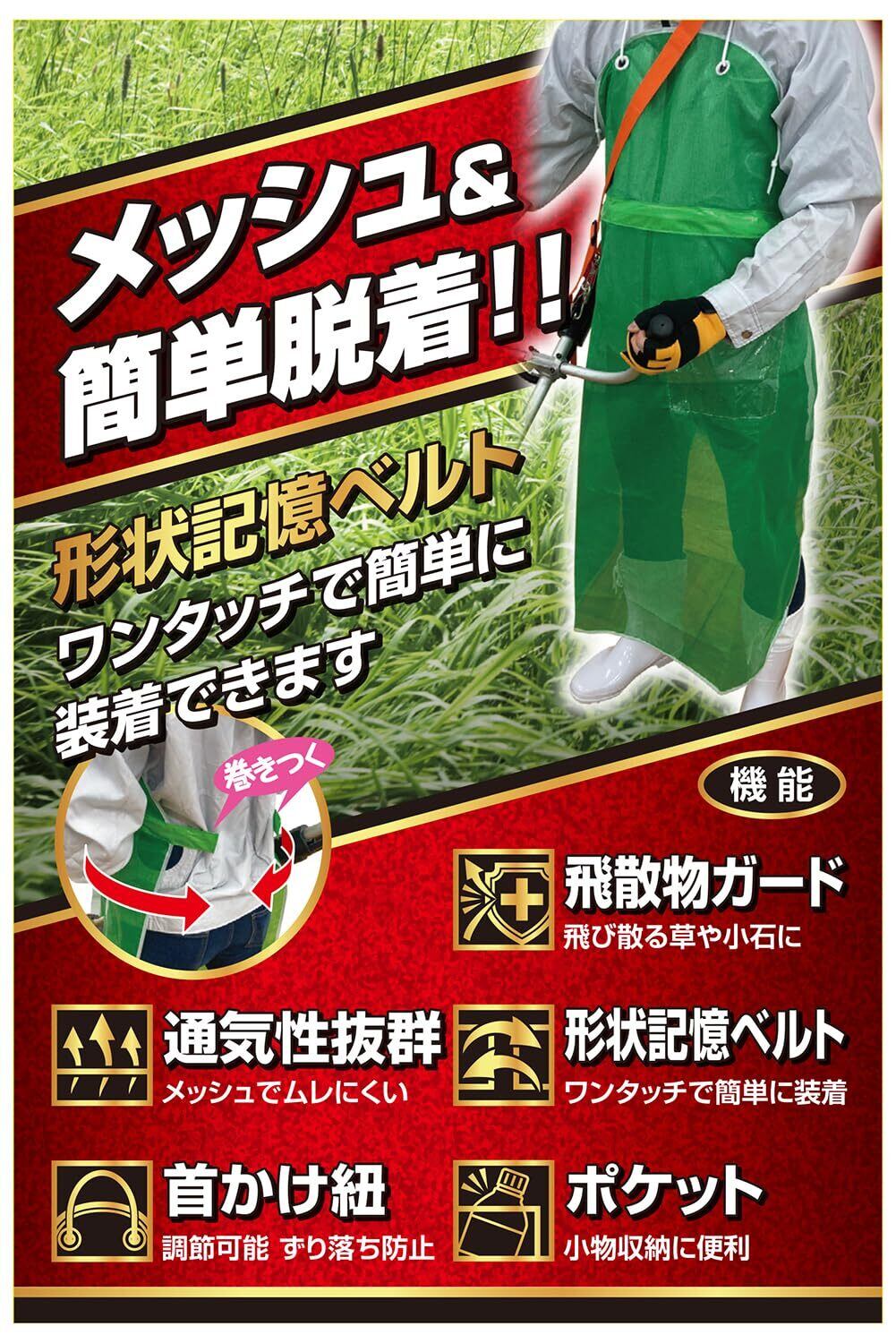 [セフティー3] ガーデンエプロン ワンタッチメッシュエプロン グリーン Free Size