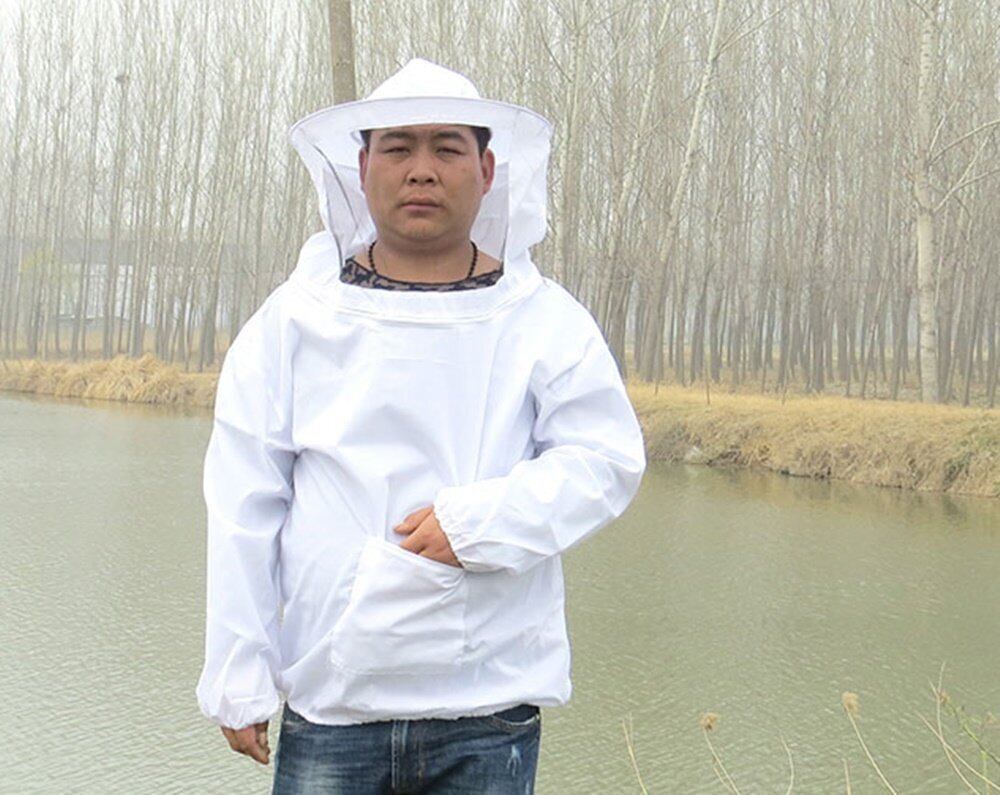 鉄壁 防護服 養蜂 害虫駆除 虫よけ フェイスネット 付き (ホワイト)