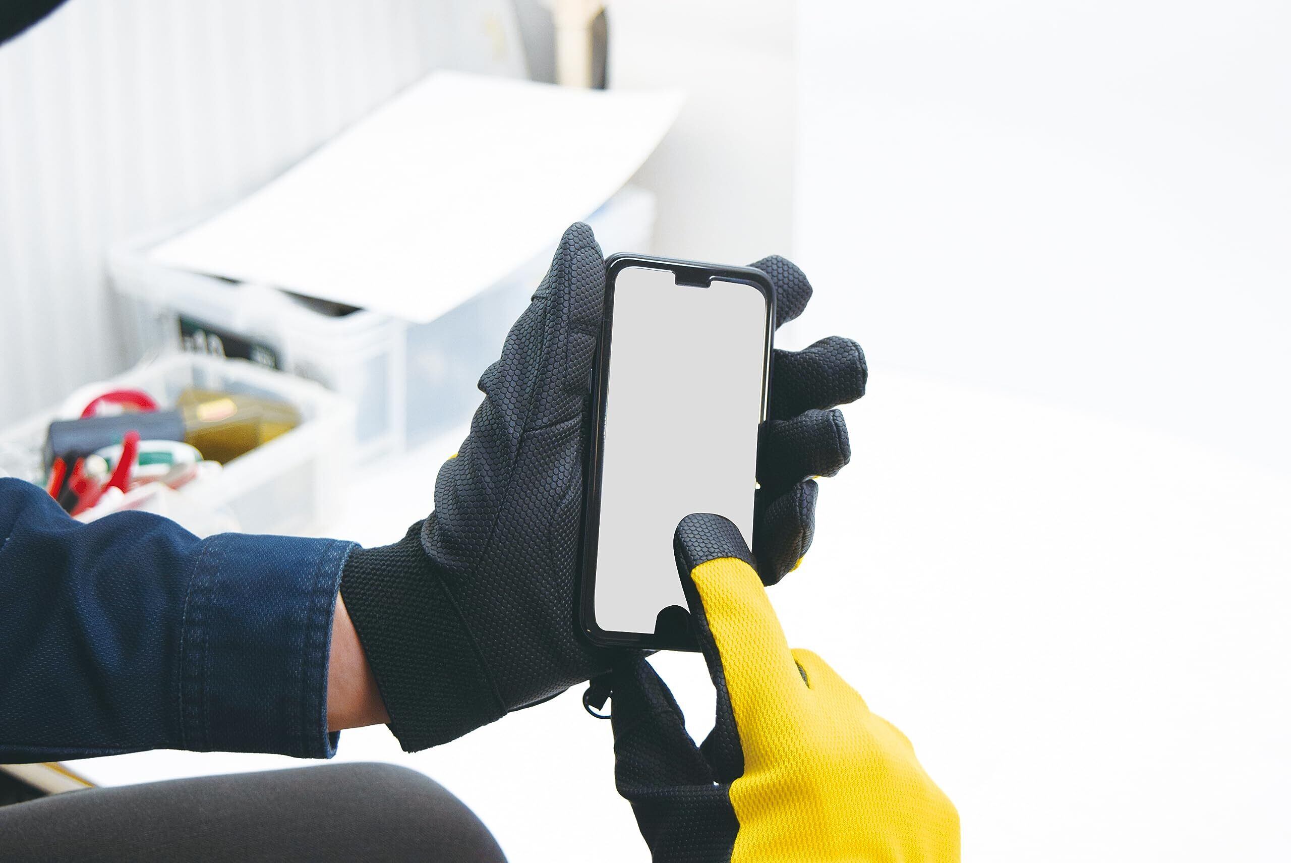 ソフトなグリップ:指・手の平部分に合成皮革を使用。長時間の作業でも疲れにくく、スマホなどの操作も簡単
