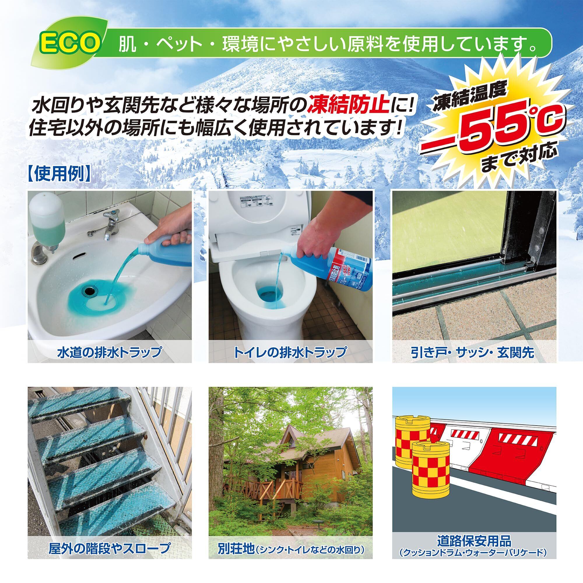 グリセリンとエタノールを主成分としておりますので、色々な用途に安心して使用でき、希釈により-55℃迄対応します。