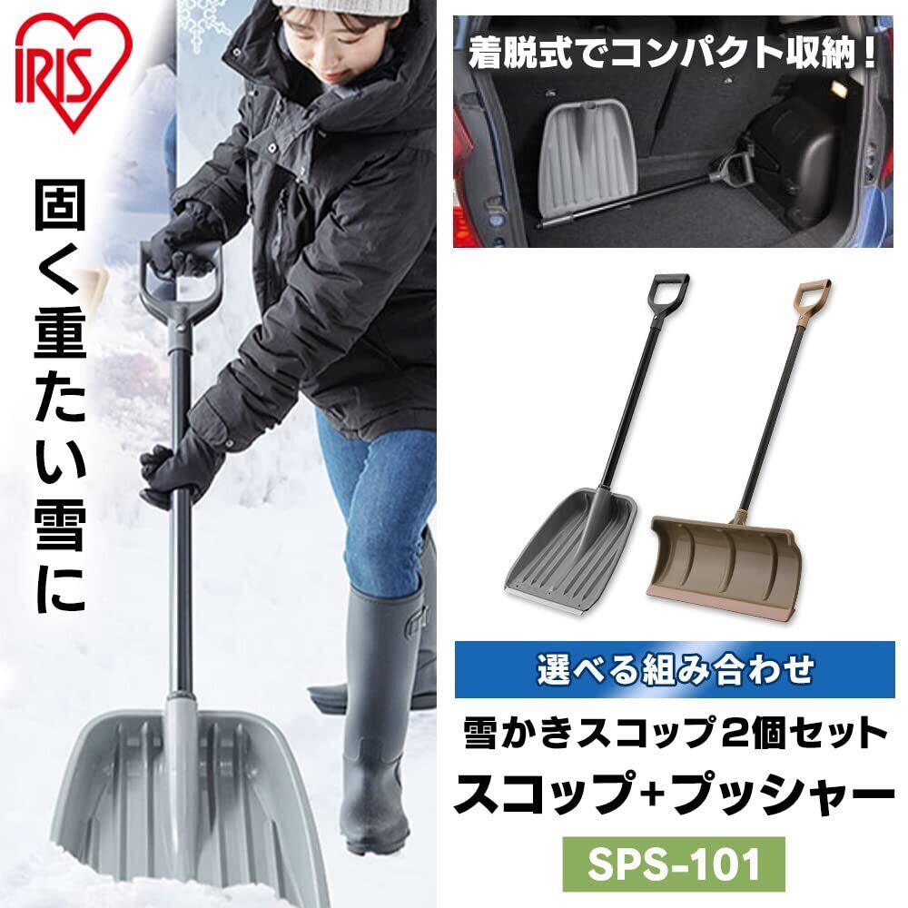 アイリスオーヤマ 雪かきセット(スコップ+プッシャー) 軽量1.1kg 着脱可式でコンパクト収納 持ち運び便利 SPS-101 グレー/カーキ
