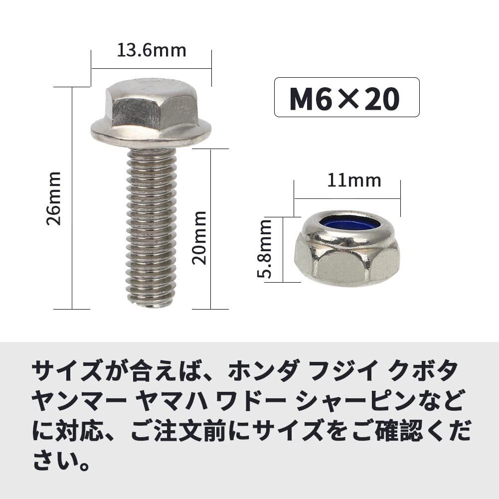 motoparty 除雪機汎用シャーボルト 6mm×20mm 10本入り 補修 除雪機アクセサリ ホンダ フジイ クボタ ヤンマーヤマハ ワドー シャーピンに適用