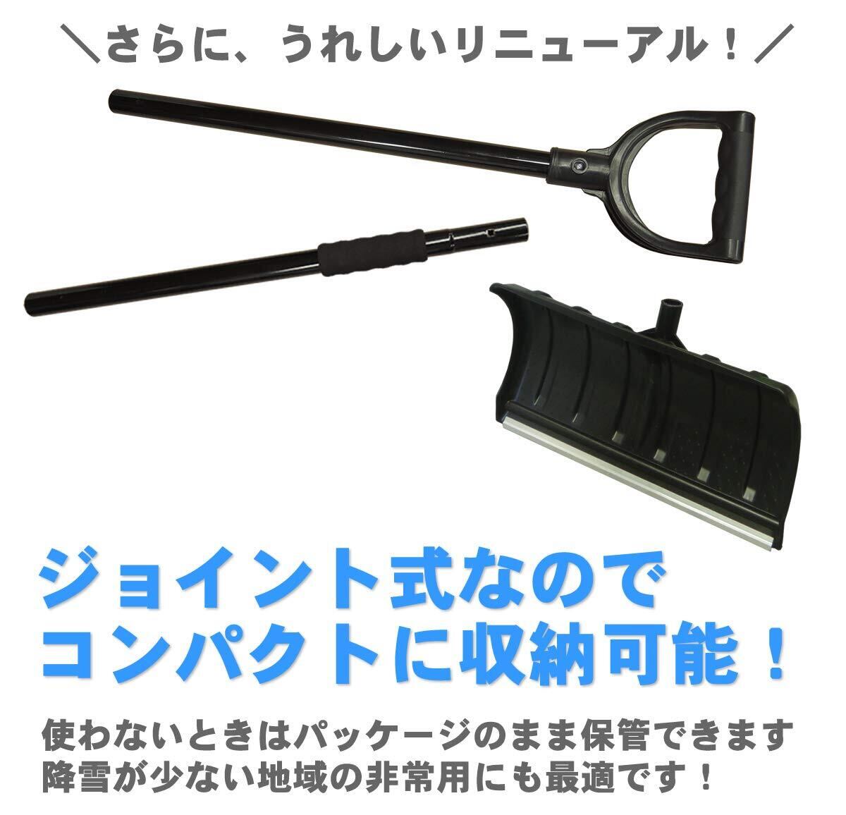 突然の雪に!軽量で扱いやすいスノープッシャーです。先端は金属製の強化ブレード付きで、柄はしっかりしたジョイント式のスチール製のパイプを採用。ネジ留めによるかんたん組み立て式で、不要な時期などコンパクトに分解することも可能。【改良しました】2021年12月入荷分より、柄のパイプをより厚手のものに変更・強化しました(0.5mm→0.8mm)