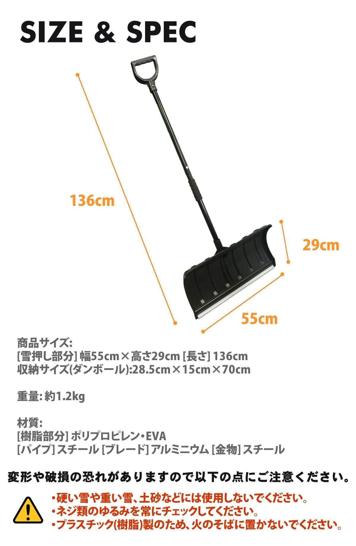 サイズ: [雪押し部分] 幅55cm×高さ29cm [長さ] 136cm [収納サイズ] 28.5cm×15cm×70cm