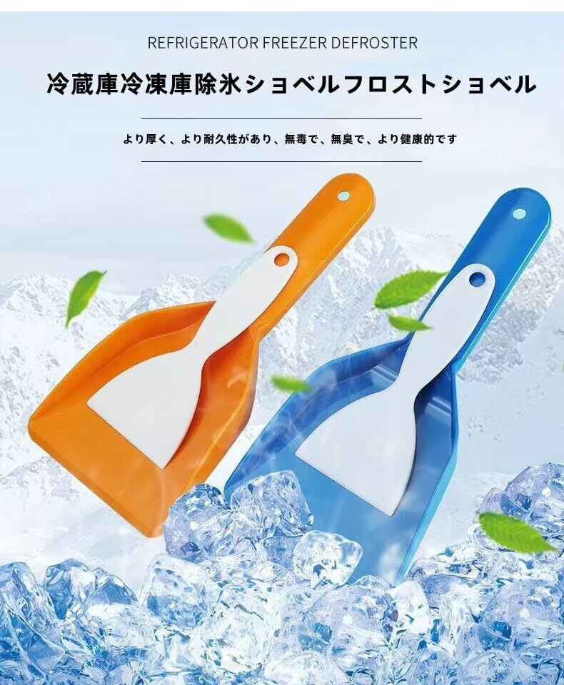 冷蔵庫 霜取り スクレーパー シャベル 2枚 小型 プラスチック 氷 アイスシャベル 除氷ツール シャベル 氷除き ショベル 除雪 冷凍庫の清掃 霜取りショベル 除氷機 冷蔵庫用清掃用品 キッチン用 (オレンジ+ホワイト)
