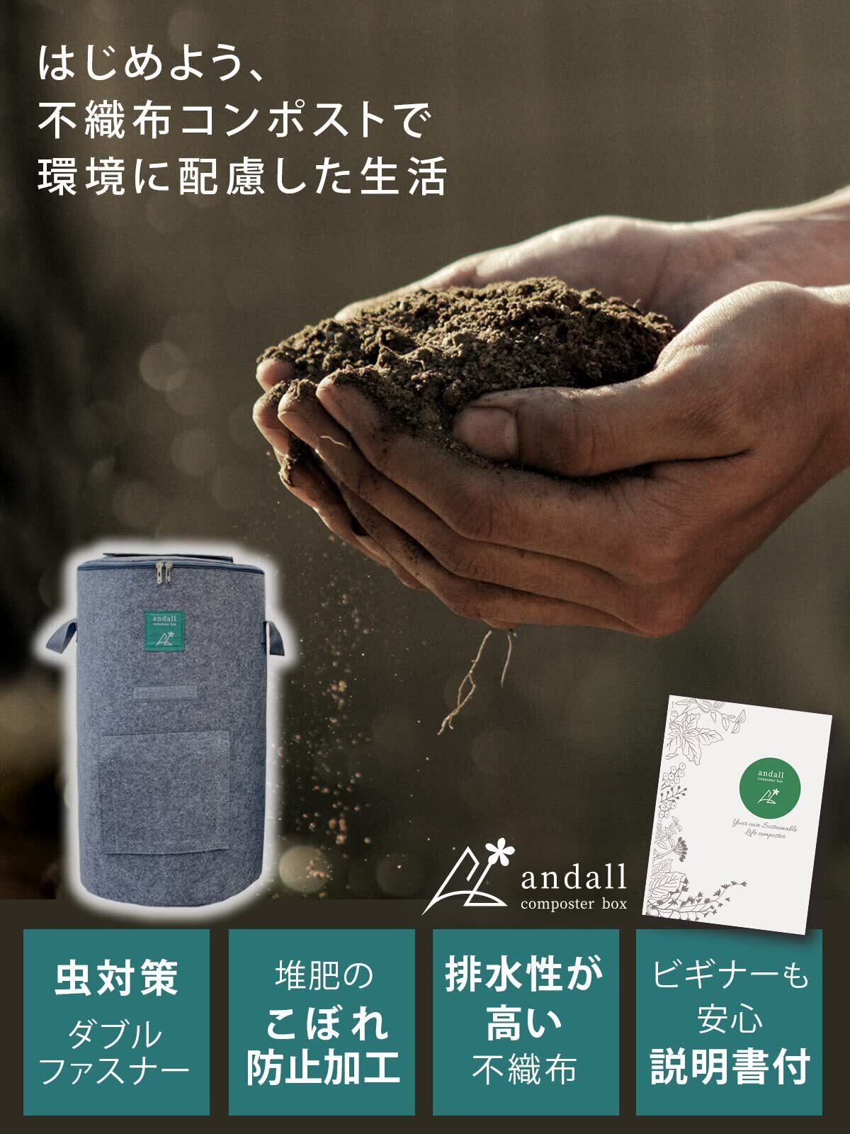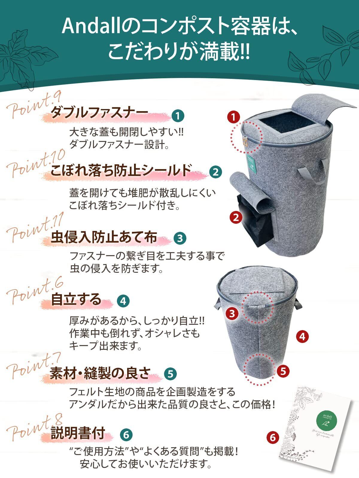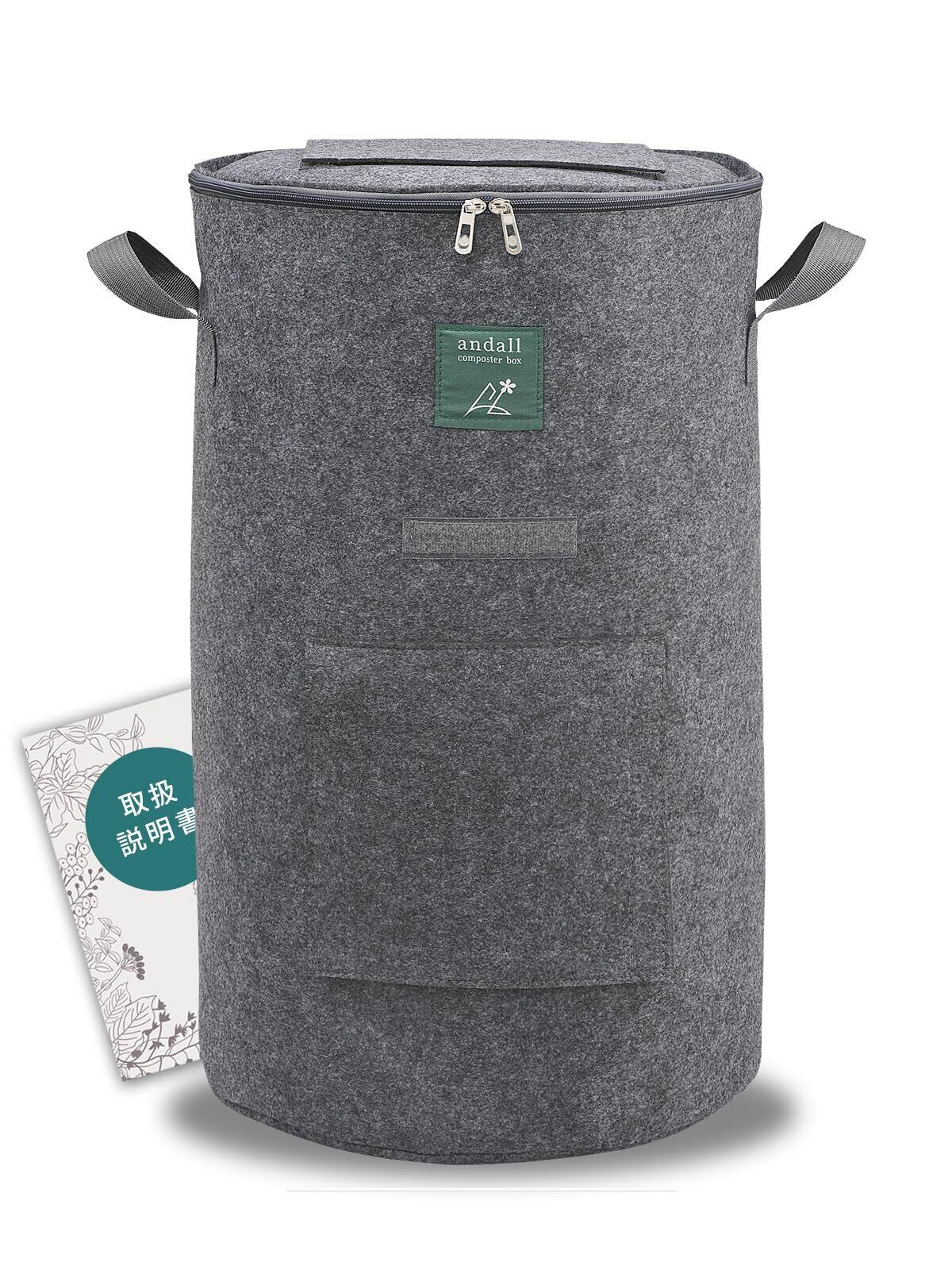 Andall コンポスト 容器 【おしゃれに堆肥作り 説明書付】 家庭用 生ゴミ処理機 コンポスター コンポストバッグ 生ごみ 堆肥 肥料 不織布 脱臭 防カビ 堆肥化容器 ベランダ アンダル (チャコールグレー)