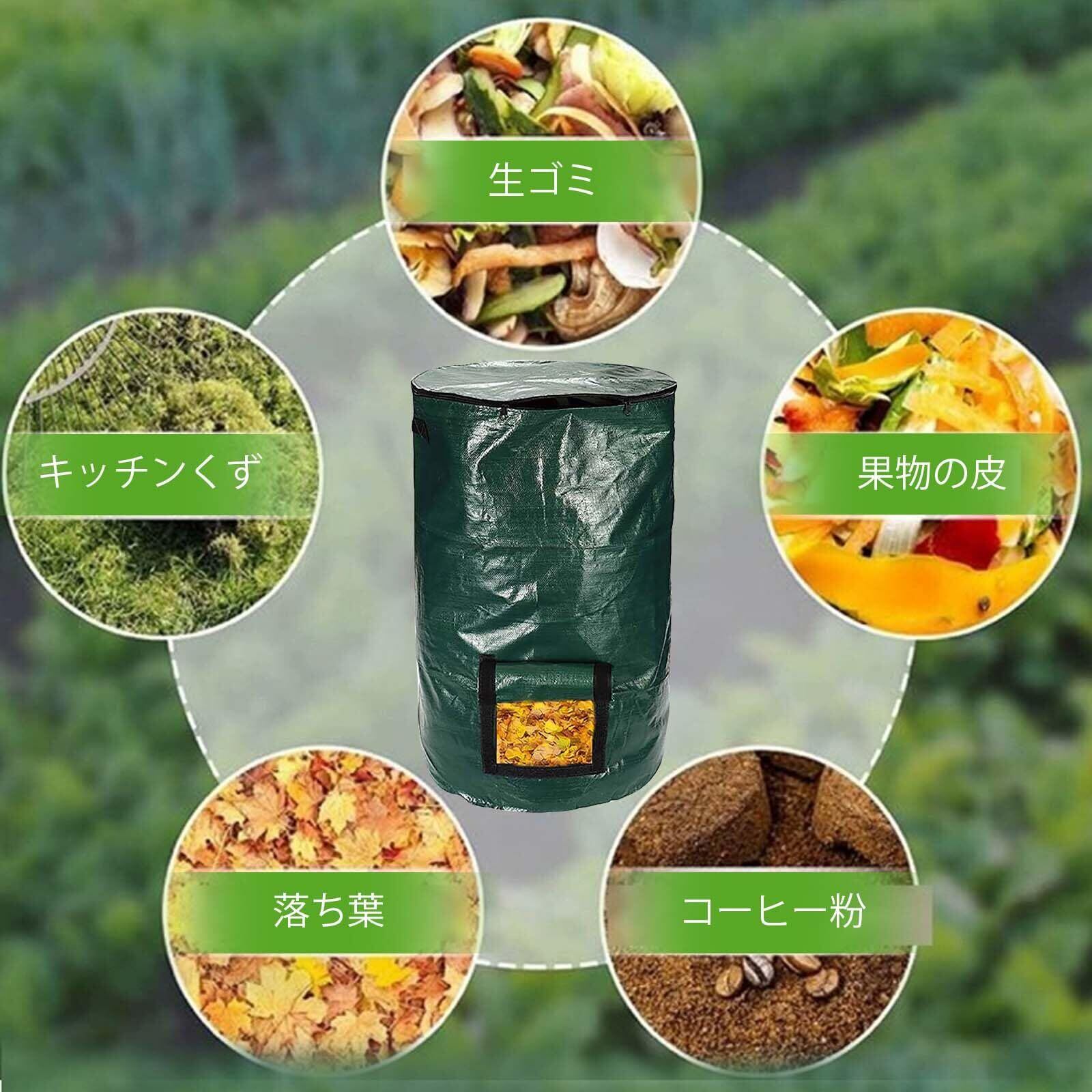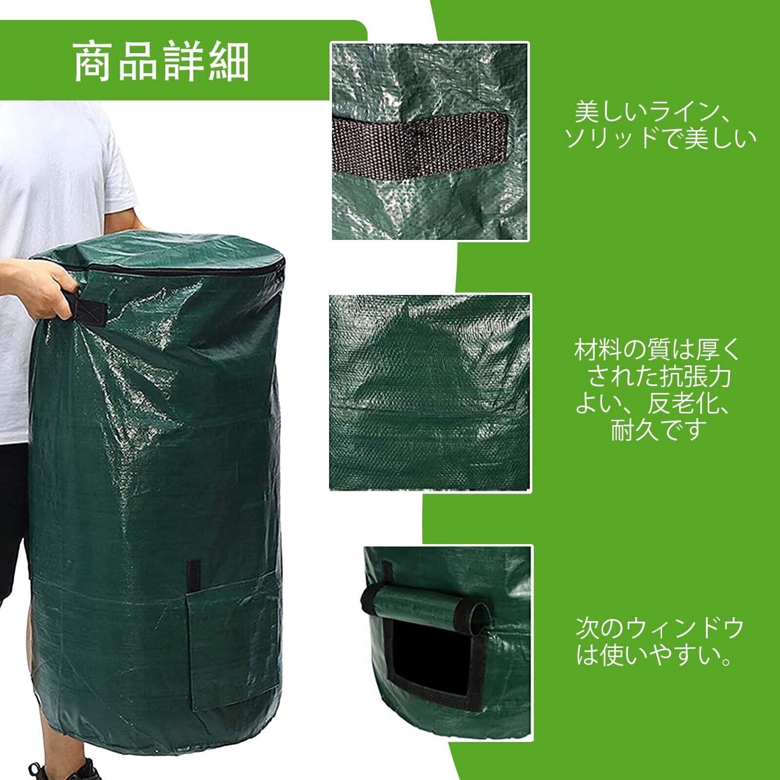 コンポスト バッグ ガーデン用 植え袋 堆肥 バッグ ゴミ処理 コンポスト 容器 落ち葉処理 肥料袋 剪定くず 収納 植え袋 屋外 堆肥 廃棄物処理 生ゴミ 発酵 家庭用 園芸用 折り畳め 自立式 環境に優しい 再利用可能 PEの布製 エコ (緑, D45cmx80cm)