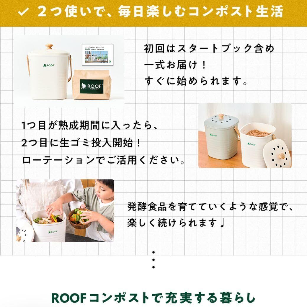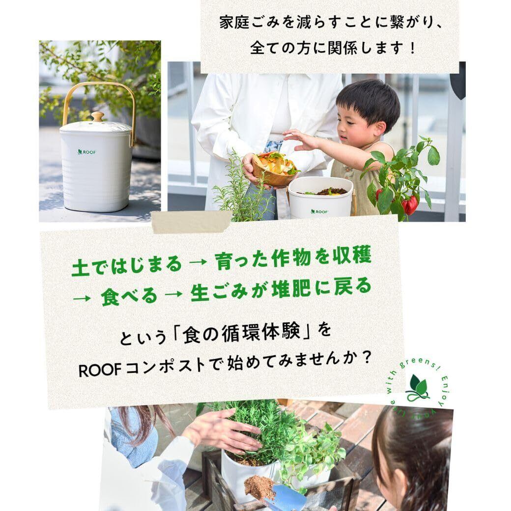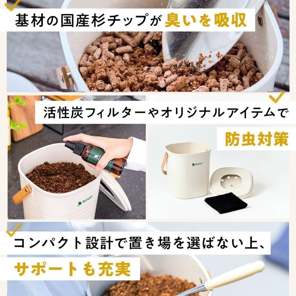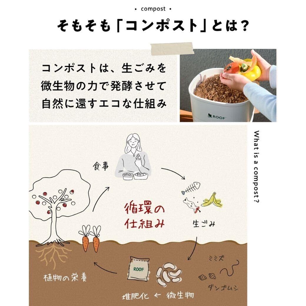 【公式・発酵基材付】ROOF コンポスト (ホワイト) 公式 コンパクト 生ごみ処理器 電気不使用 室内使用可 助成金対象 バイオ式 ルーフ