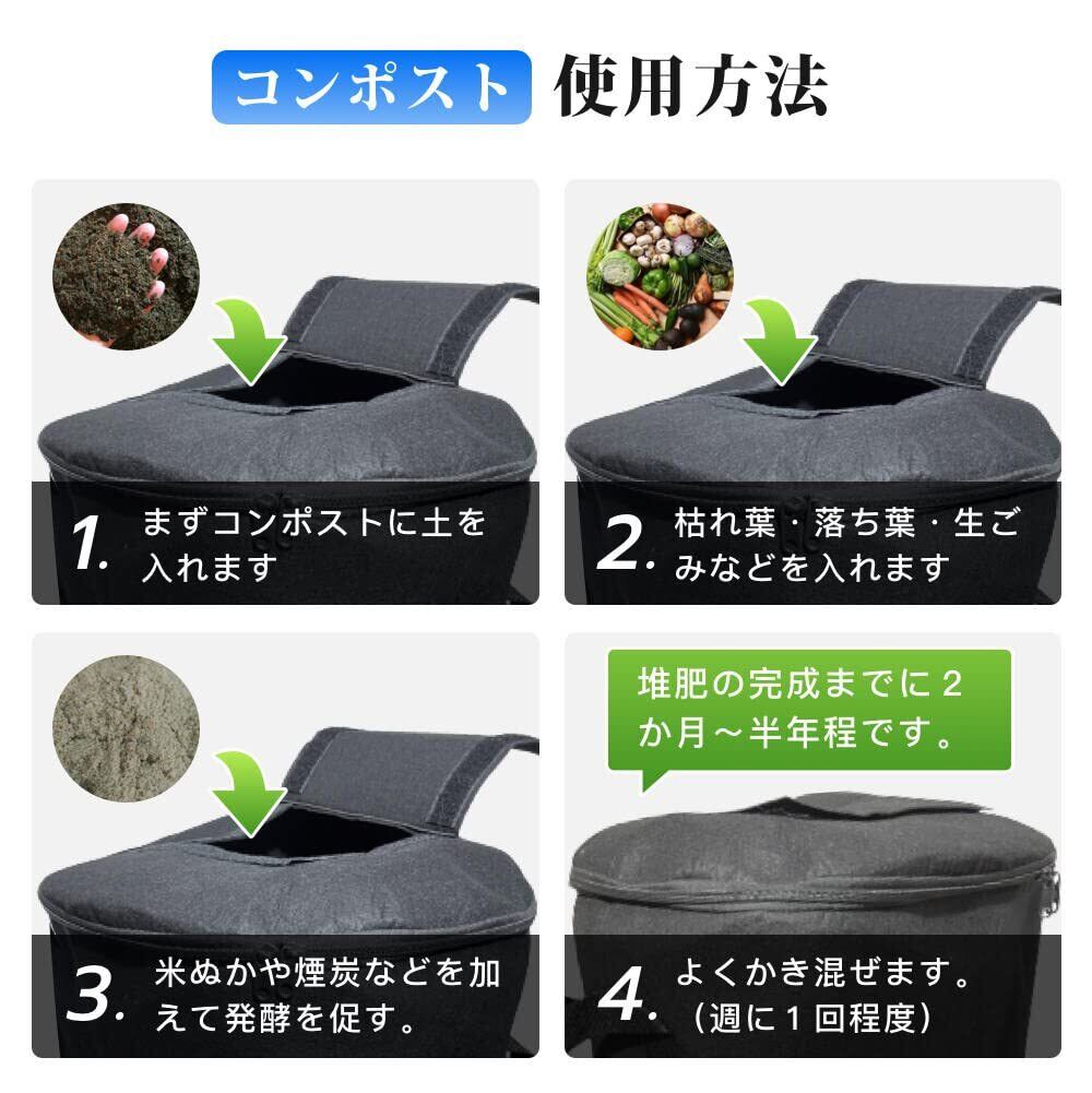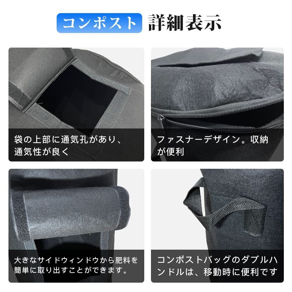 【優れた機能】袋の上部に通気孔があり、通気性が良く。果物や野菜などの台所廃棄物や庭廃棄物を速やかに分解することができます。袋の上部に廃棄物を入れることができます、大きなサイドウィンドウから肥料を簡単に取り出すことができます。排水性に優れている為、余分な水分を排除してカビや悪臭を防御、だから室内でも使えます。