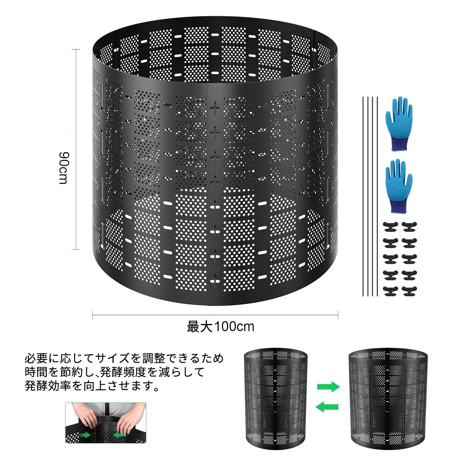 【大容量】コンポスト容器は最大容量は830Lで、あらゆる廃棄物を保管し発酵させるのに十分です。必要に応じてサイズを調整できるため、時間を節約し、発酵頻度を減らして発酵効率を向上させます。