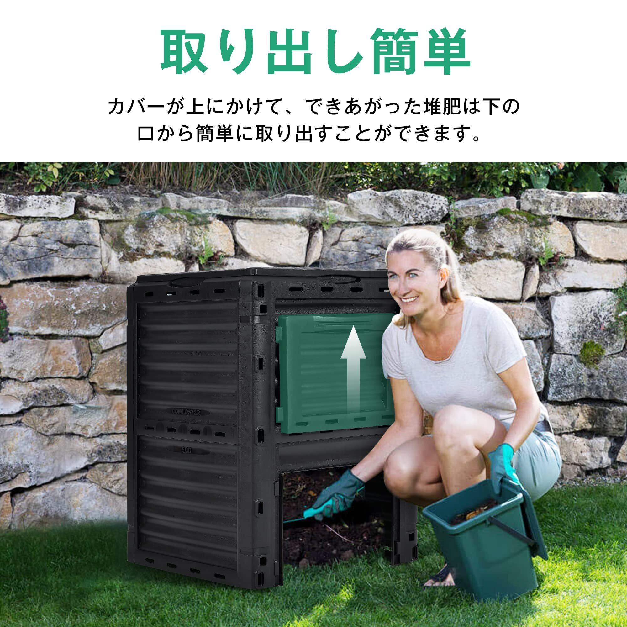 【誰でも簡単に使用可能】上蓋から廃棄物を加え、約2〜3ヶ月待てば発酵できます。知識のない方でも手軽に栄養値の高い堆肥を作り出せます。組立も工具不要のため、はめ込むだけで出来上がり!