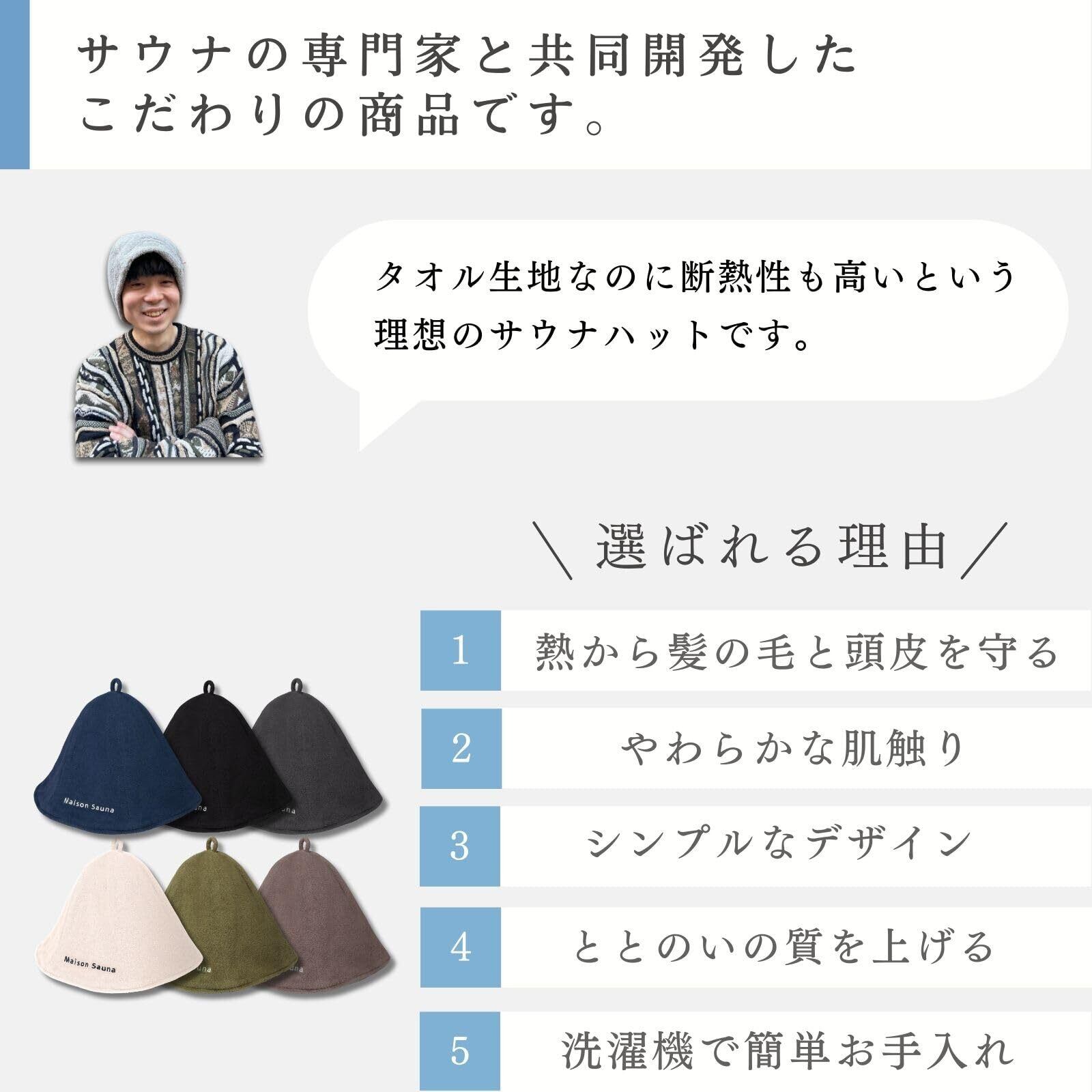 [Maison Sauna] サウナハット 【サウナ・スパ健康アドバイザー推薦】 のぼせ防止 タオル生地 サウナット 洗濯簡単 メンズ レディース サウナグッズ