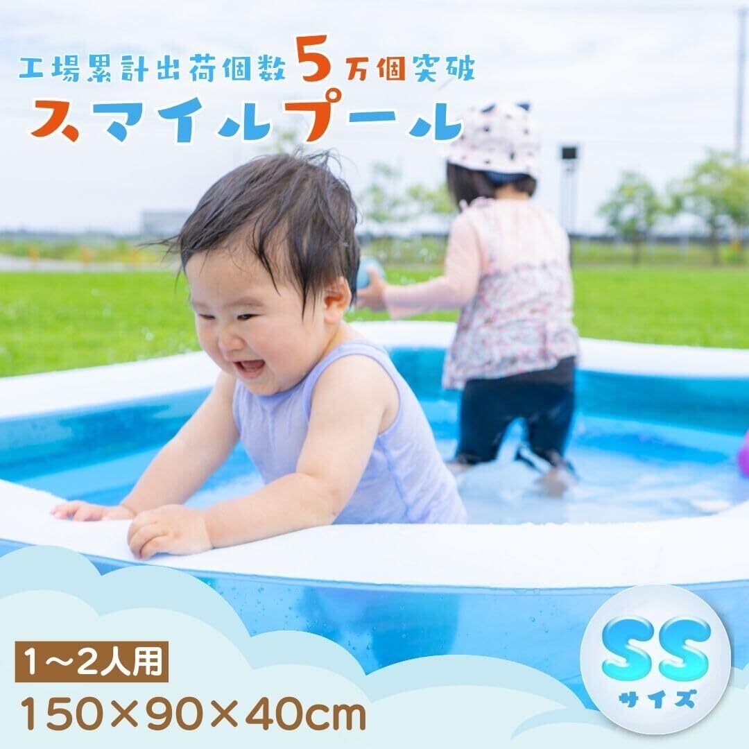 【スマイルプールsince2022】スマイルプールは家庭でも楽しく遊べるをモットーに2022年開発されたまだ新しいビニールプールです。家族みんなで楽しい時間を過ごしていただけるよう3サイズのプールを用意しました。日本の会社、メーカーが販売しております。
