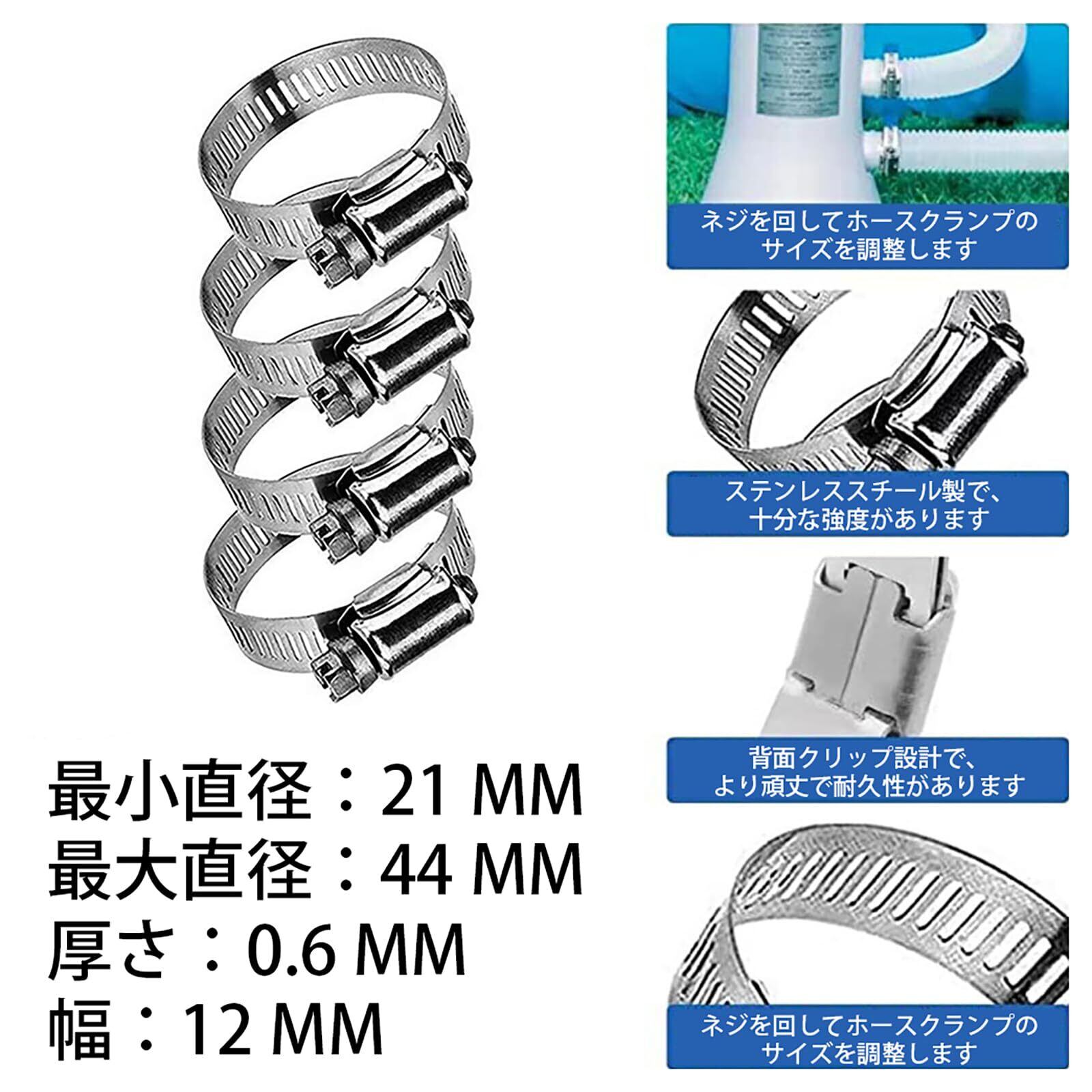 プール用ホースセット:この便利なキットで、地上のプールホースを一瞬でできます。漏れ防止用プール ホース 1 本 [長さ 59 インチ、直径 1.25 インチ] と二重絶縁またはシングル ポンプ用の 2 フィートの真鍮クランプが含まれています。
