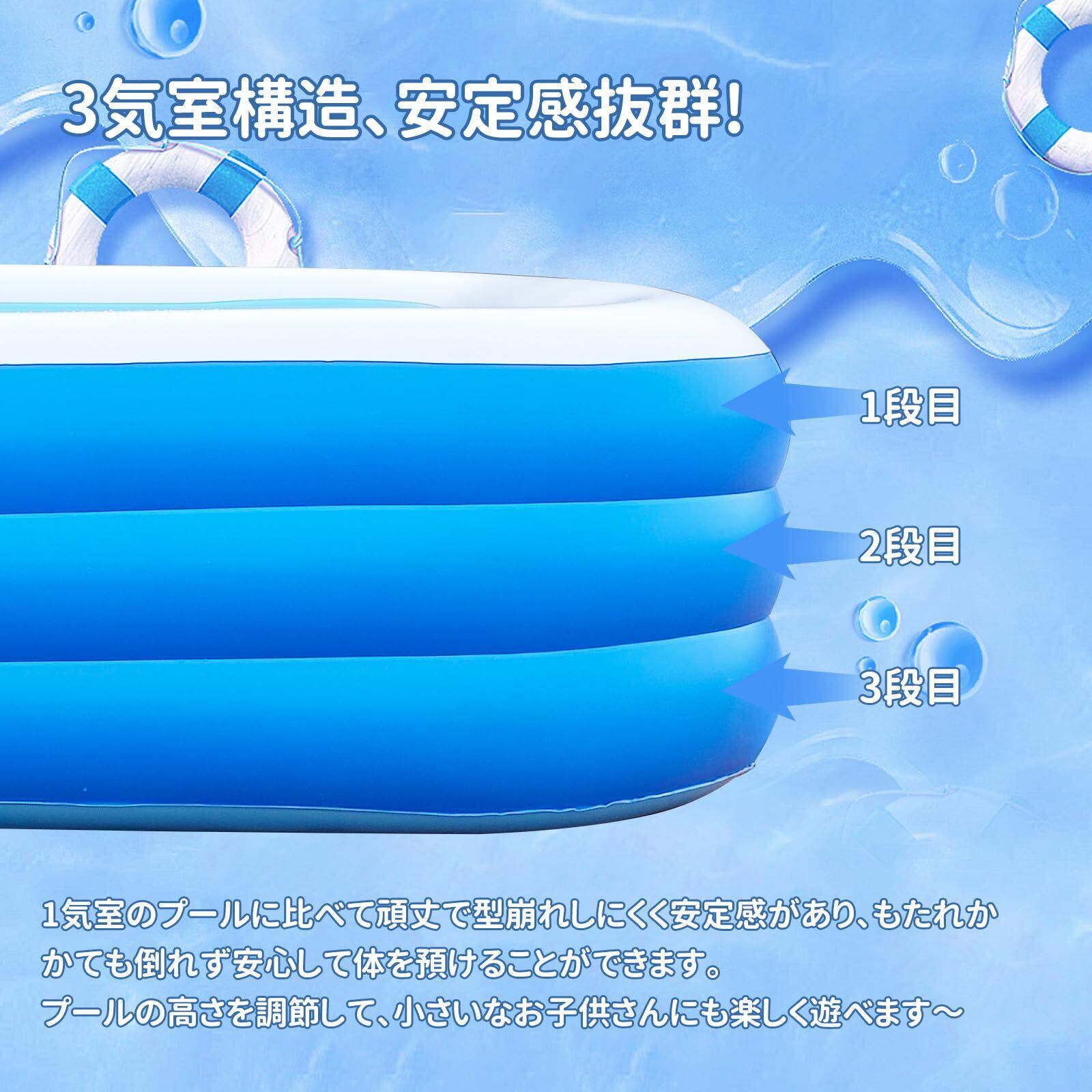 ビニールプール 大型 家庭用 スイミングプール 大容量 3つ気室 290x170x54cm エアープール 子供プール 空気入れ 水遊び 夏 猛暑対策L