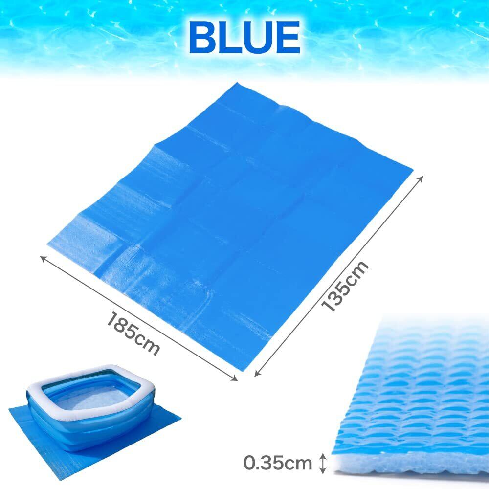 プール マット 厚手 【子供たちを笑顔にするプール】 大きい 300㎝用 250㎝用 200㎝用 150㎝用 大型 家庭用 シート カバー (ブルー, 185cm×135cm×3.5mm)