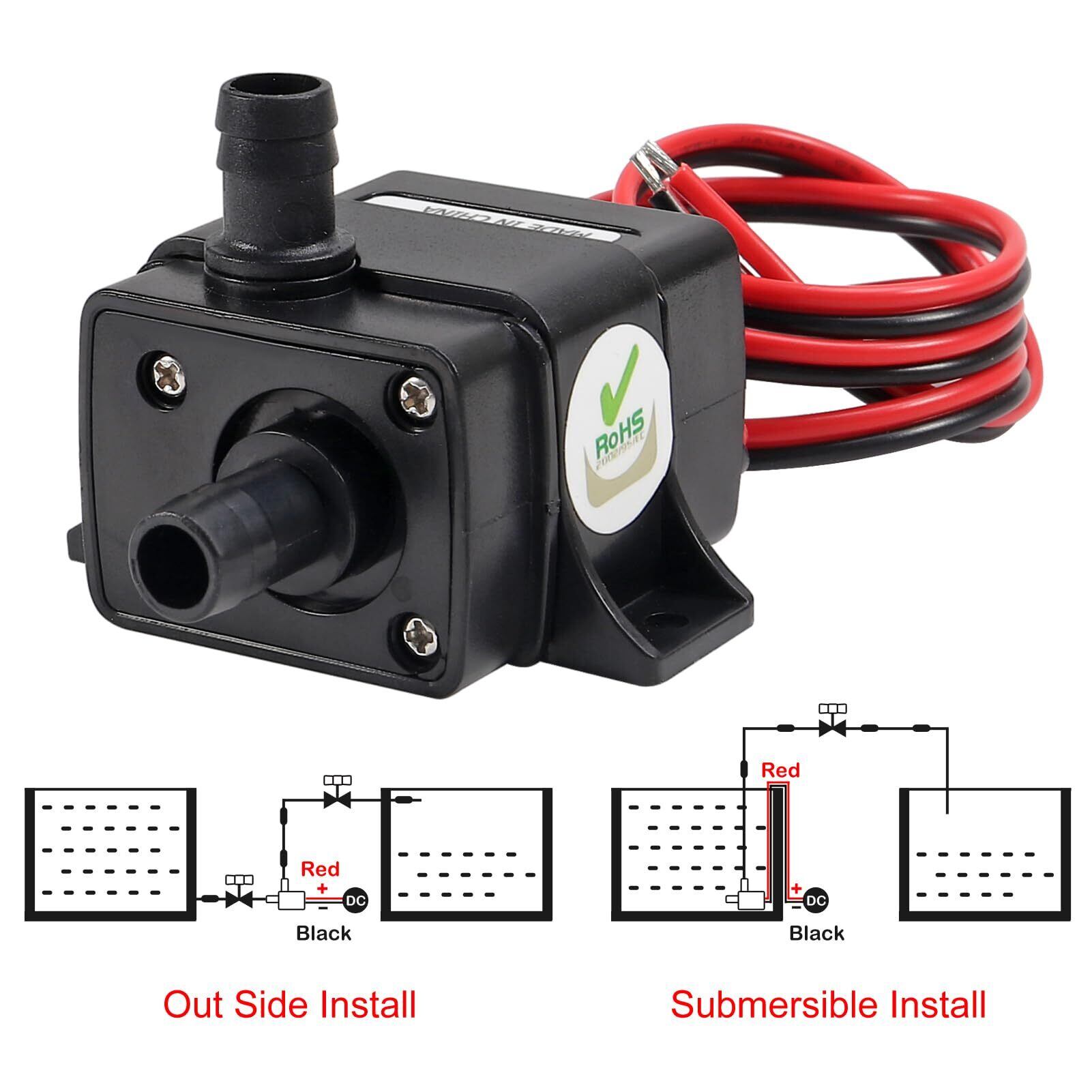 ミニポンプ電圧dc 12 v /4.8 w(交流禁止);電線:赤は「+」、黒は「-」最大流量:240 l / h(63ガロン)