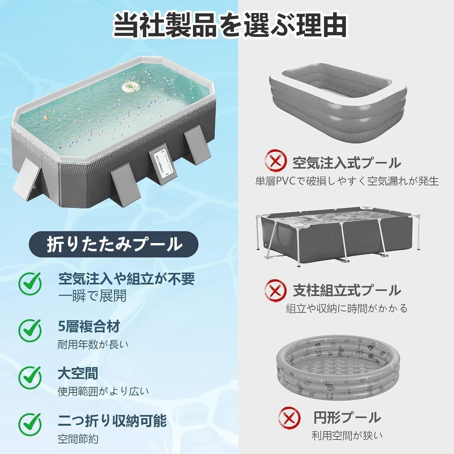 【2025最新改良 1秒高速オープン 非膨張式】プール 大型 折り畳み式 空気入れ不要 ビニールプール 組み立て不要 家庭用 子供用 簡単な排水 収納便利 屋内用/アウトドア用 水遊び 猛暑対策 日本語説明書付き(外径295*180*50CM,内径255*135*50CM)