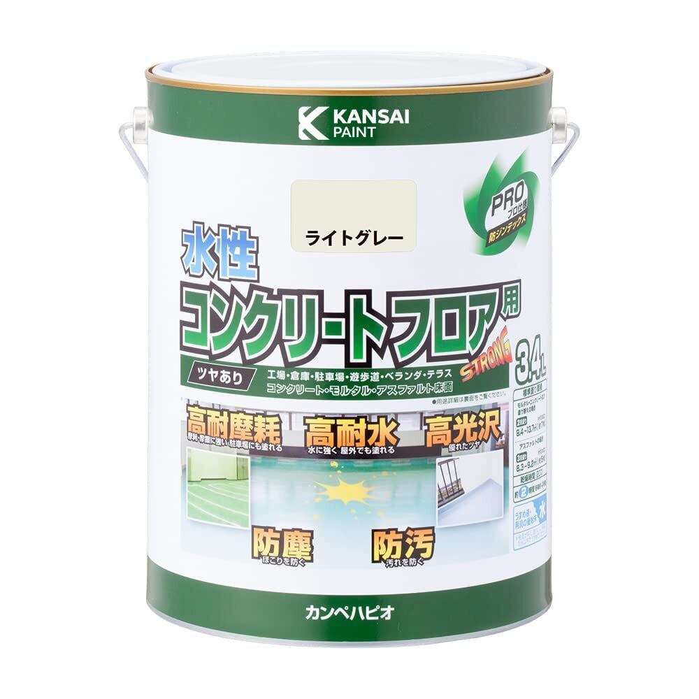カンペハピオ ペンキ 塗料 水性 つやあり 床用 耐摩耗性 高耐水 高光沢 防塵 防汚 水性コンクリートフロア用 ライトグレー 3.4L 日本製 00467650651034