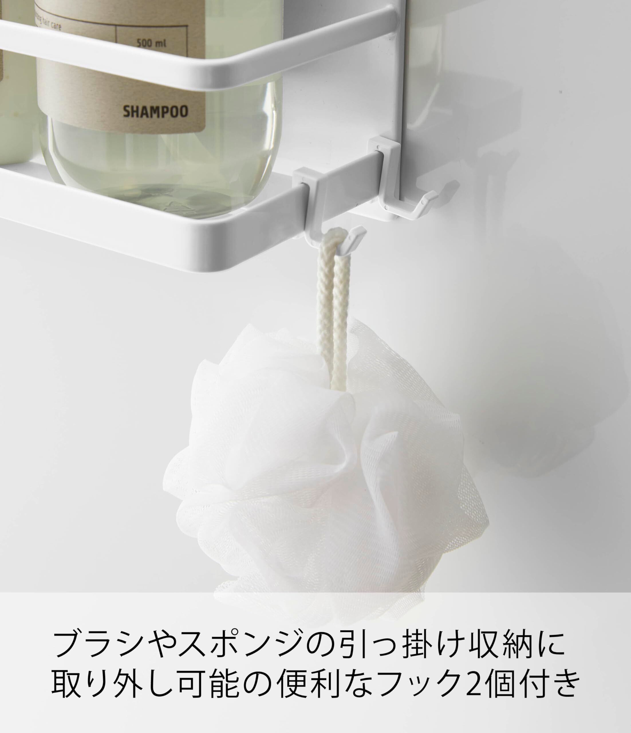 山崎実業(Yamazaki) マグネット バスルーム ラック ワイド ホワイト 約W28XD9.5XH8cm ミスト 浴室ラック 浴室収納 フック付き 4237