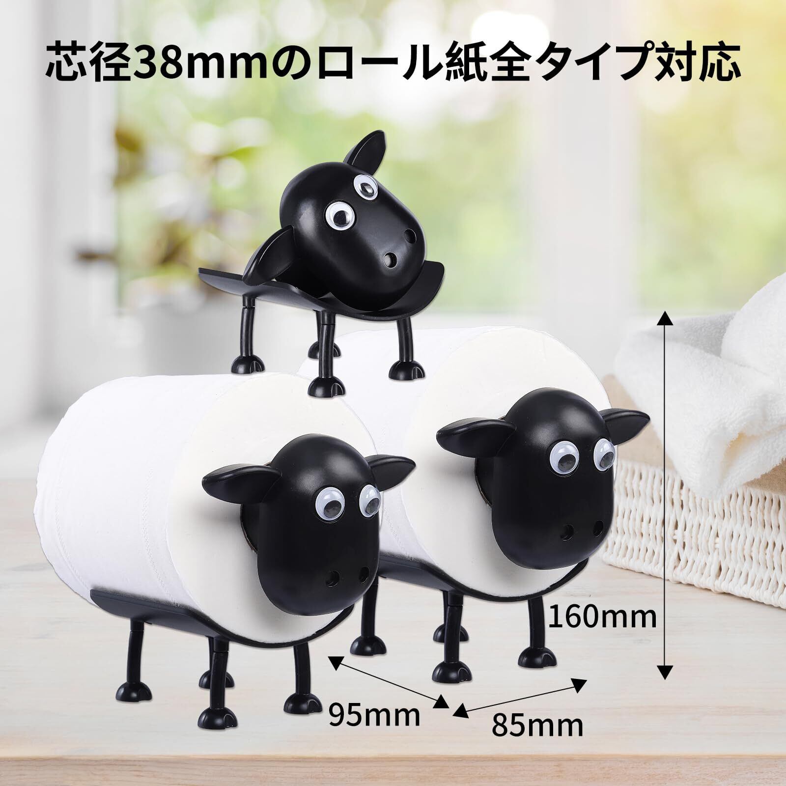 QY MARKET 3個セット 羊のトイレットペーパーホルダー【JIS規格 直径38mm】おしゃれ 北欧風デザイン トイレットペーパーホルダー おしゃれ 取り付け簡単 エコ素材 バスルームアクセサリー 贈り物にも最適 | KSショップ