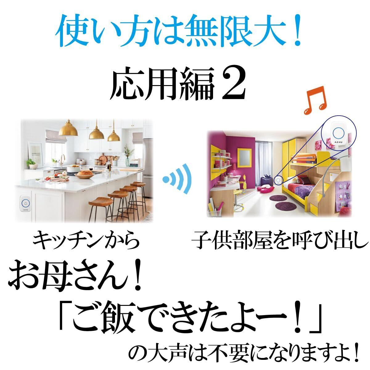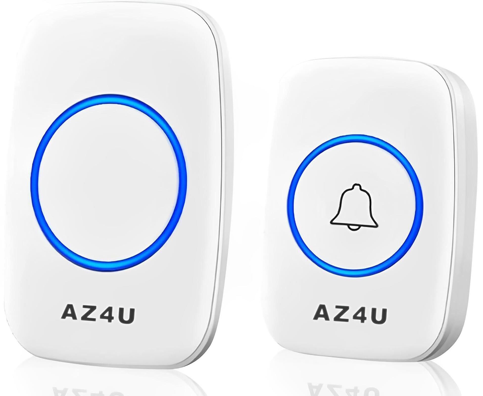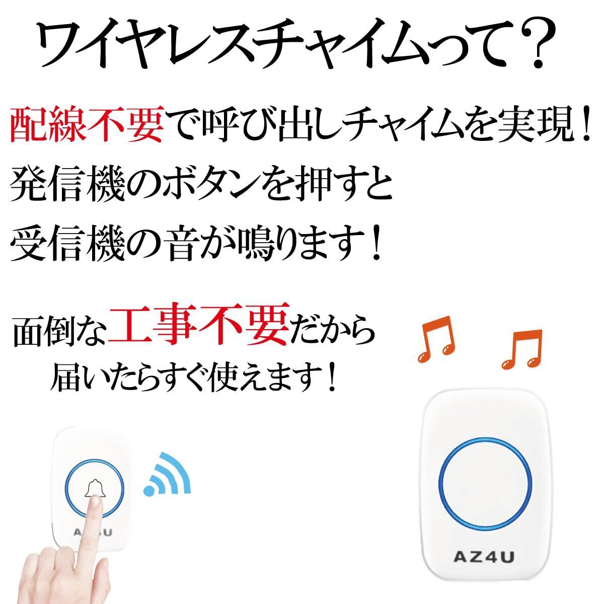 AZ4U ワイヤレスチャイム インターホン 電池式 ドアベルキット 工事不要 防水 玄関 介護 呼び出し 60種類のメロディ 4段階音量調整 ホワイト