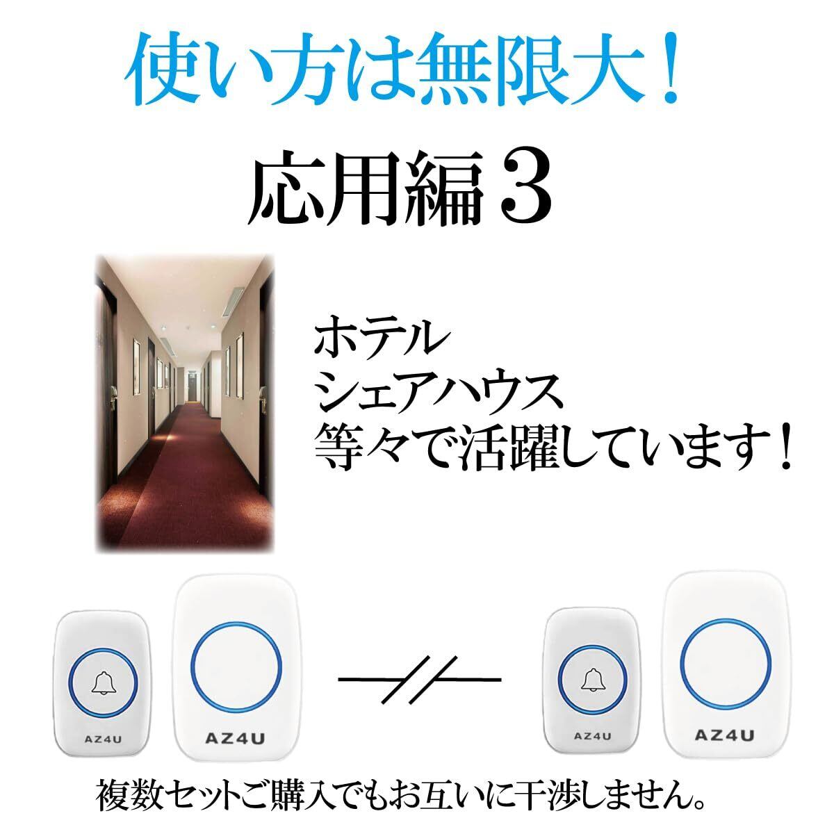 干渉しない: ワイヤレスチャイムを複数セット購入してもお互いに干渉せず、安心して使用できる