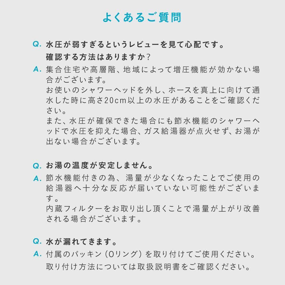 お客様より水圧、水漏れに関するお問い合わせをいただき、水圧と水漏れ対策において品質改良を実施しまして、現在販売中の商品では問題を解消しております。万が一何か不備がございましたら、お気軽にお問い合わせください。