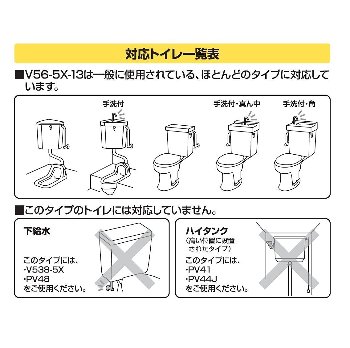 万能タイプなのでほとんどのタンクに取付できます。詳しい適応タンクは商品画像をご覧ください。※下給水・ハイタンクのトイレには対応していません。