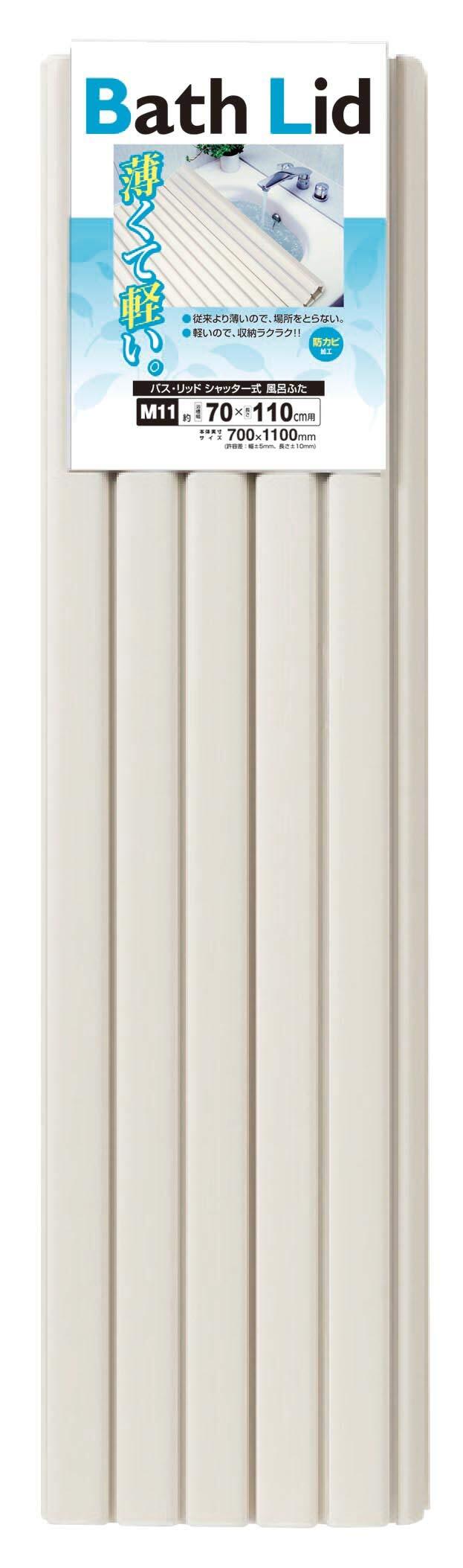 オーエ 風呂ふた ホワイト 約縦70×横110cm バスリッド M-11 シャッター式 薄型 軽量 防カビ 加工