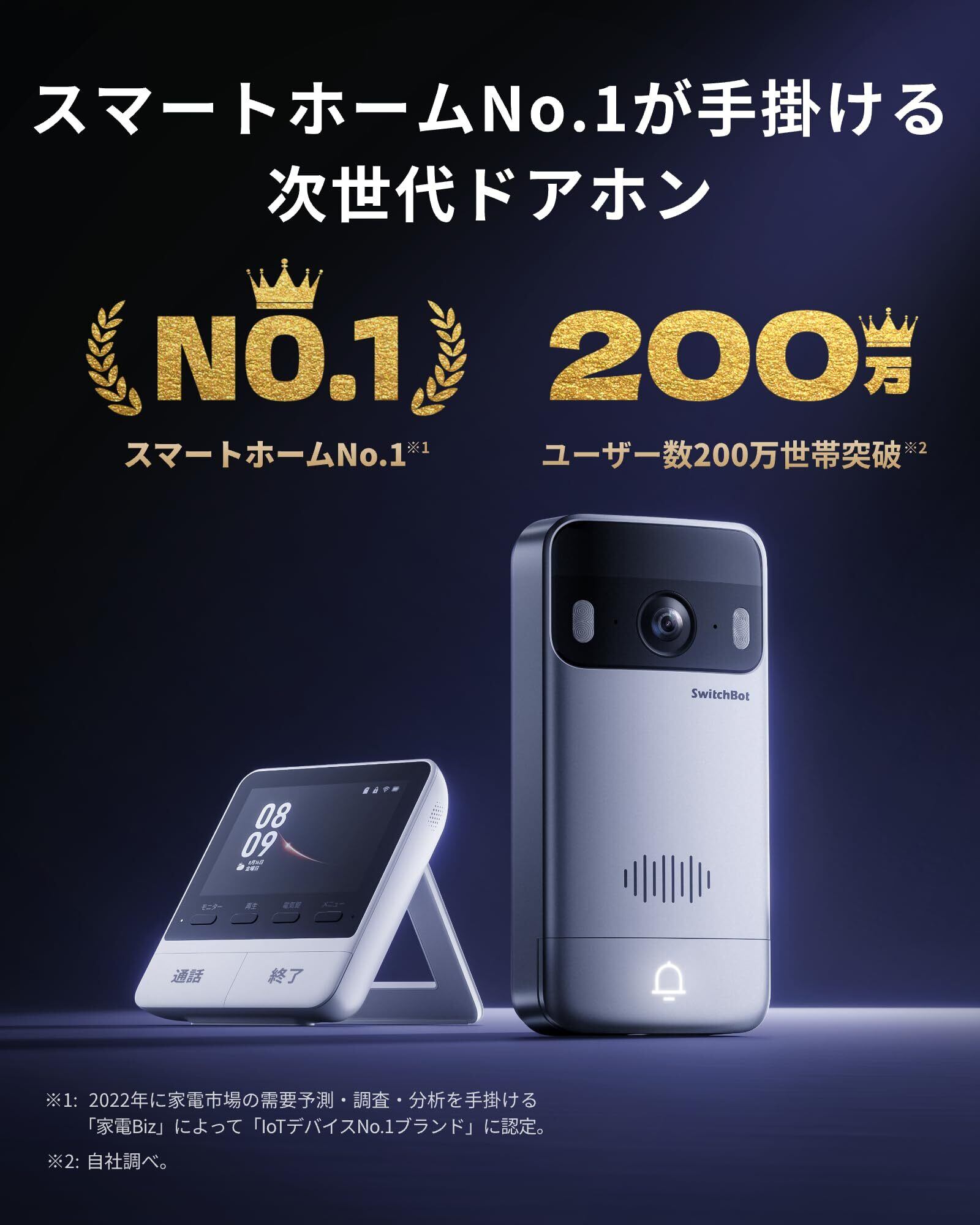 SwitchBot テレビドアホン カメラ付き インターホン ドアベル - スイッチボット 双方向音声会話 遠隔確認 広角 工事不要 盗難防止 防水 モニター親機+カメラ付き玄関子機 ワイヤレス Wi-Fi | KSショップ