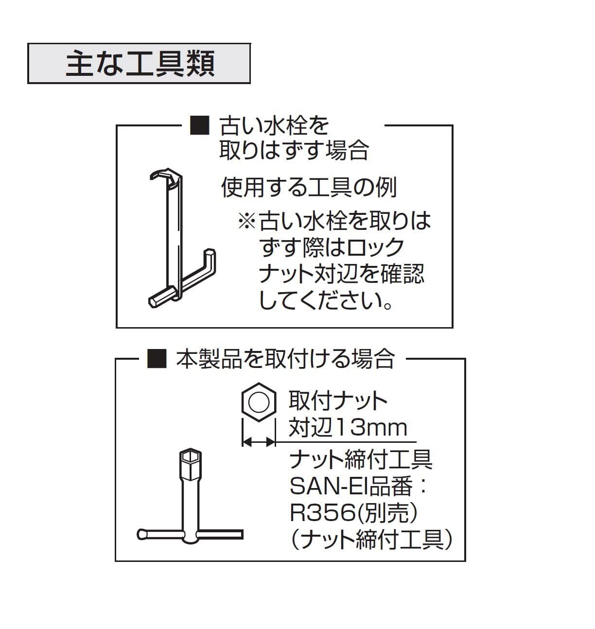 取付ボルトの締め付けには、別売のナット締付工具(品番:R356)があれば便利です。