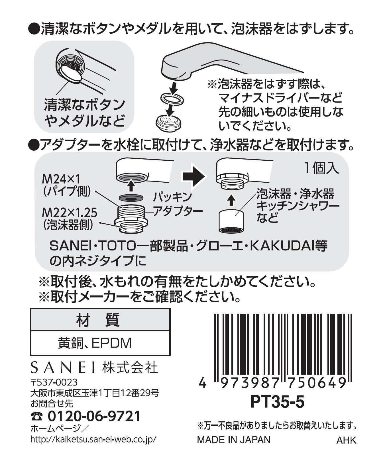 SANEI(サンエイ) 泡沫アダプター 内ネジをM22x1.25のオネジに変換 泡沫器やシャワー・浄水器などの取付に シルバー 20 x 70 x 115 mm PT35-5