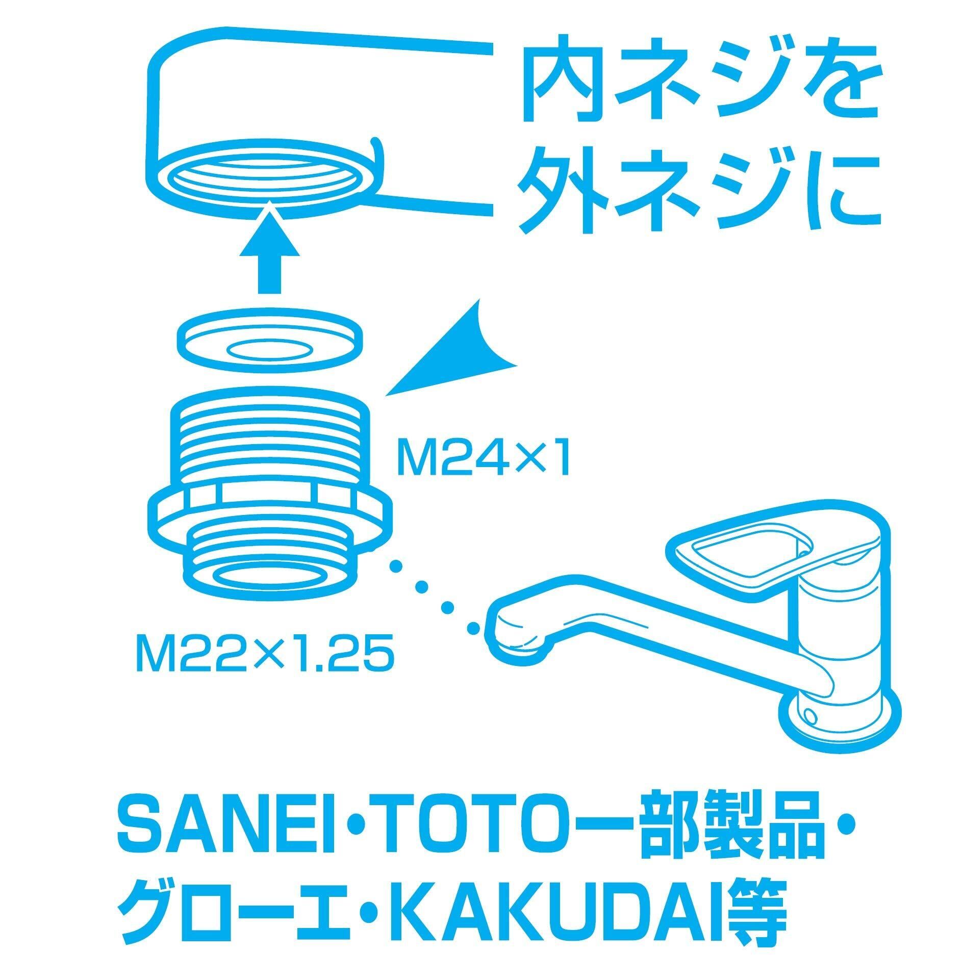 M22X1.25の泡沫器や浄水器に対応しています。M24X1のメネジをM22X1.25オネジに変換します。