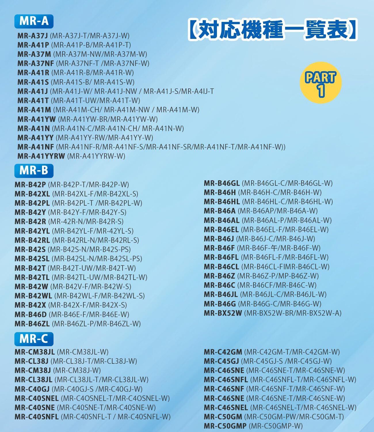【対応機種】 MRPR-01FT MR-JX52W M20VJ5526 MR-JX53Z MR-JX61Y M20KW0526 M20KWO526 MR-JX60W MR-MB45E MR-WX47C MR-WX71Z MR-B46D MR-RX47T MR-RX52T MR-WX60A MR-MX50F MR-MX57D MR-B46A MR-R47W MR-WX47D M20CM5526 MR-A37JT MR-A37M MR-A37NF MR-A41J MR-A41JS MR-A41M MR-A41N MR-A41NF MR-A41NFS MR-A41R MR-A41SB MR-A41T MR-A41YW MR-A41YY MR-B42T MR-B42W MR-B42X MR-B42Y MR-B42YL MR-B46C MR-B46Z MR-BX53X MR-JX47LA MR-JX47LW MR-JX48LX MR-JX48LY MR-JX48LZ MR-JX52A MR-JX52C MR-JX53X MR-JX53Y MR-JX55LW MR-JX56LJYなど三菱冷蔵庫