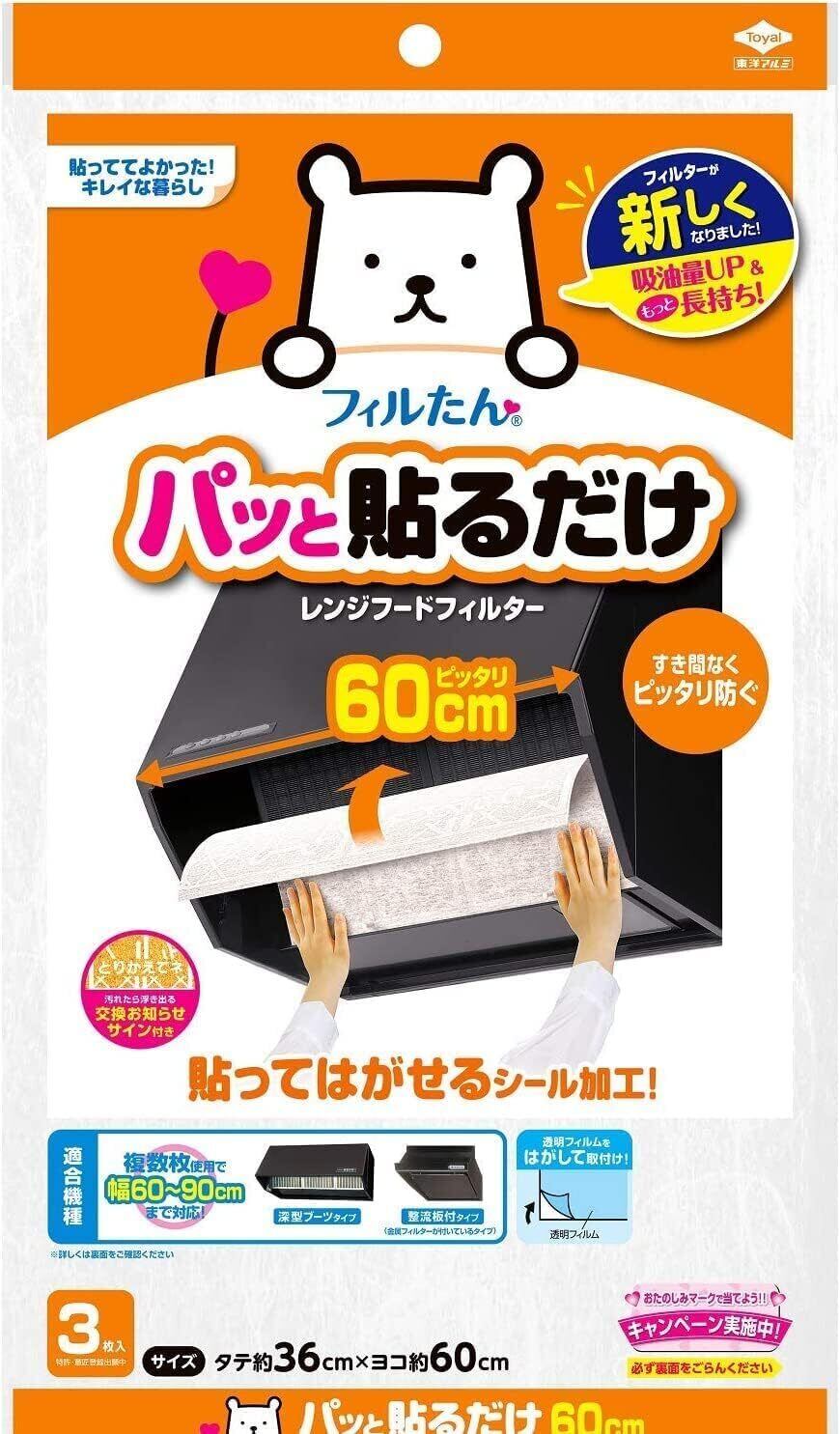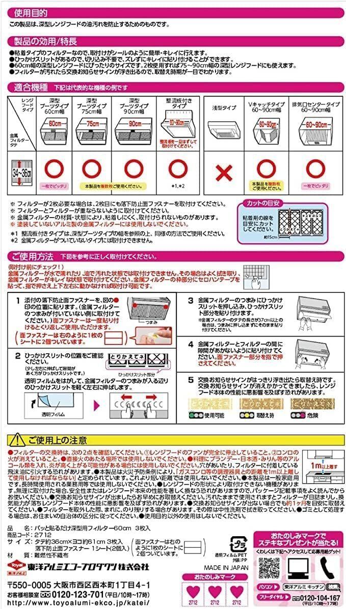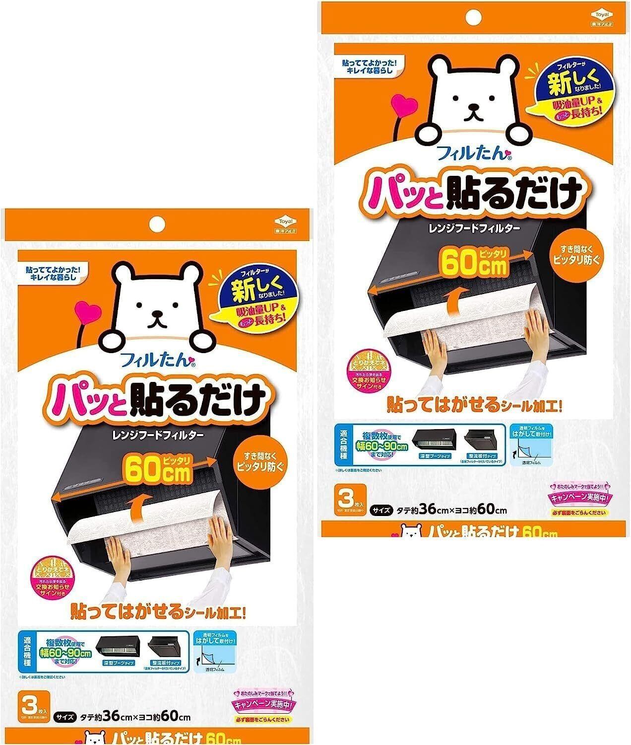 東洋アルミ パッと貼るだけ 深型用 フィルター 60cm×3枚入り 2個セット 計6枚 フィルたん まとめ買い レンジフード